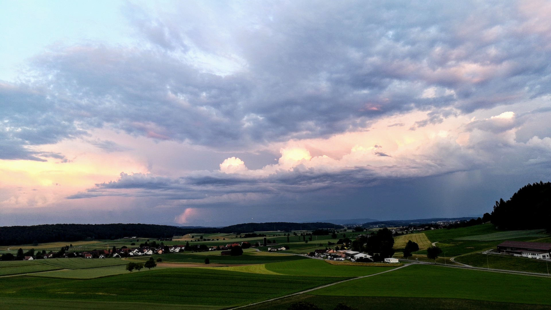 und die Gewitterzellen über den Voralpen/ Osten der Schweiz im Glühen der untergehenden Sonne