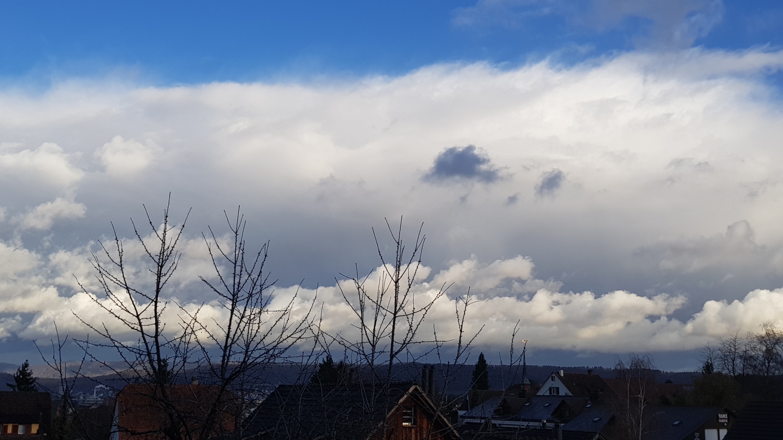 auch der Gäbris hatte ein schnell ziehendes, ziemlich kräftiges Gewitter vorhin mit Graupel und Böen, die allerdings nicht mehr so stark waren wie zwischen den präfrontalen Regenschauern noch in der milden Luft. Da gab es hier noch bis zu 140km/h, auf dem hohen Kasten sogar 193km/h.