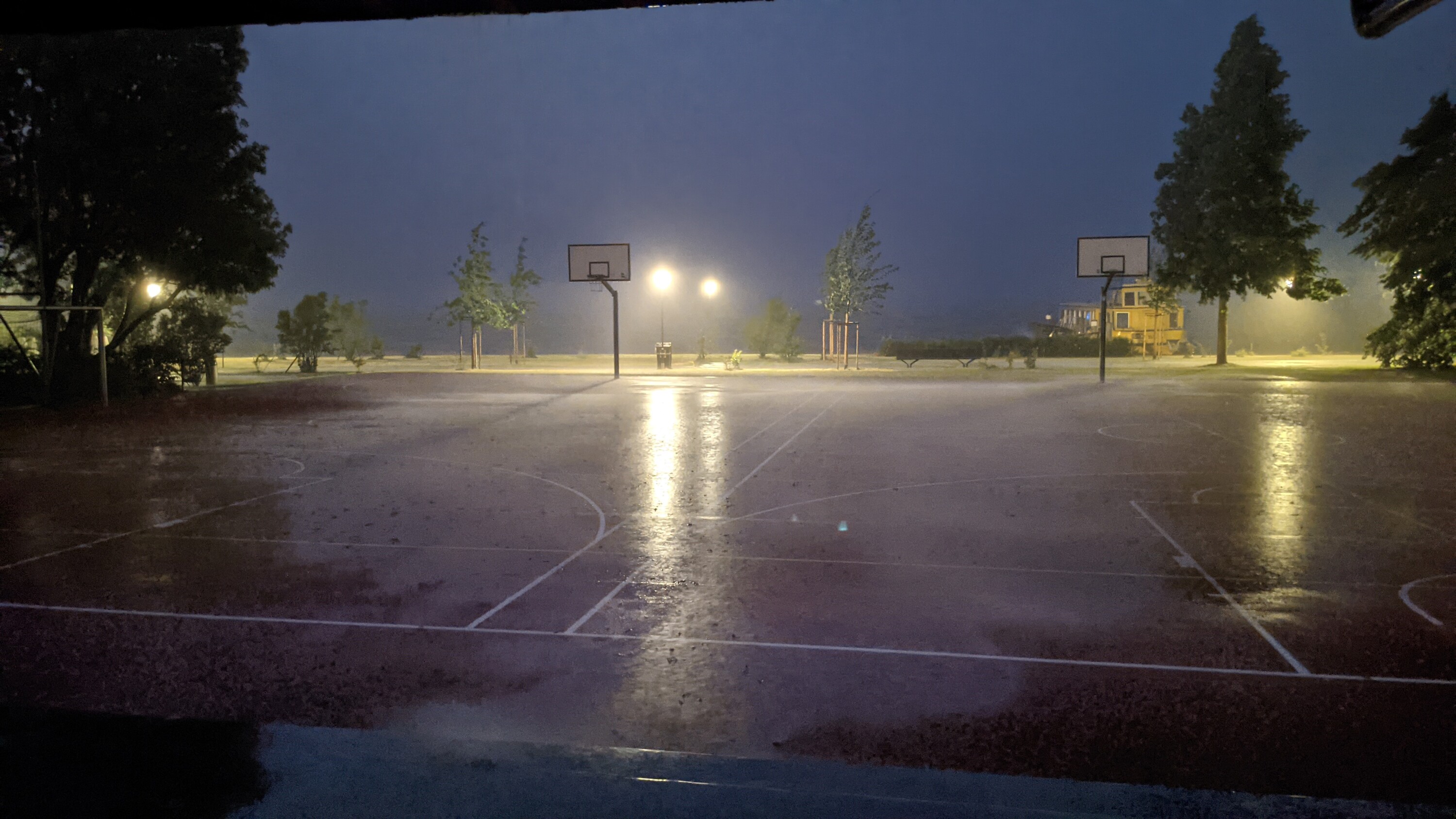 Das Gewitterzentrum ging offenbar über den Zürichsee, wir waren eher am linken (westlichen) Rand. Dementsprechend war die Regenmenge mit 7 mm nicht berauschend, aber doch genug, um für morgen Dispens vom Wässern der Blumentöpfe zu erhalten.