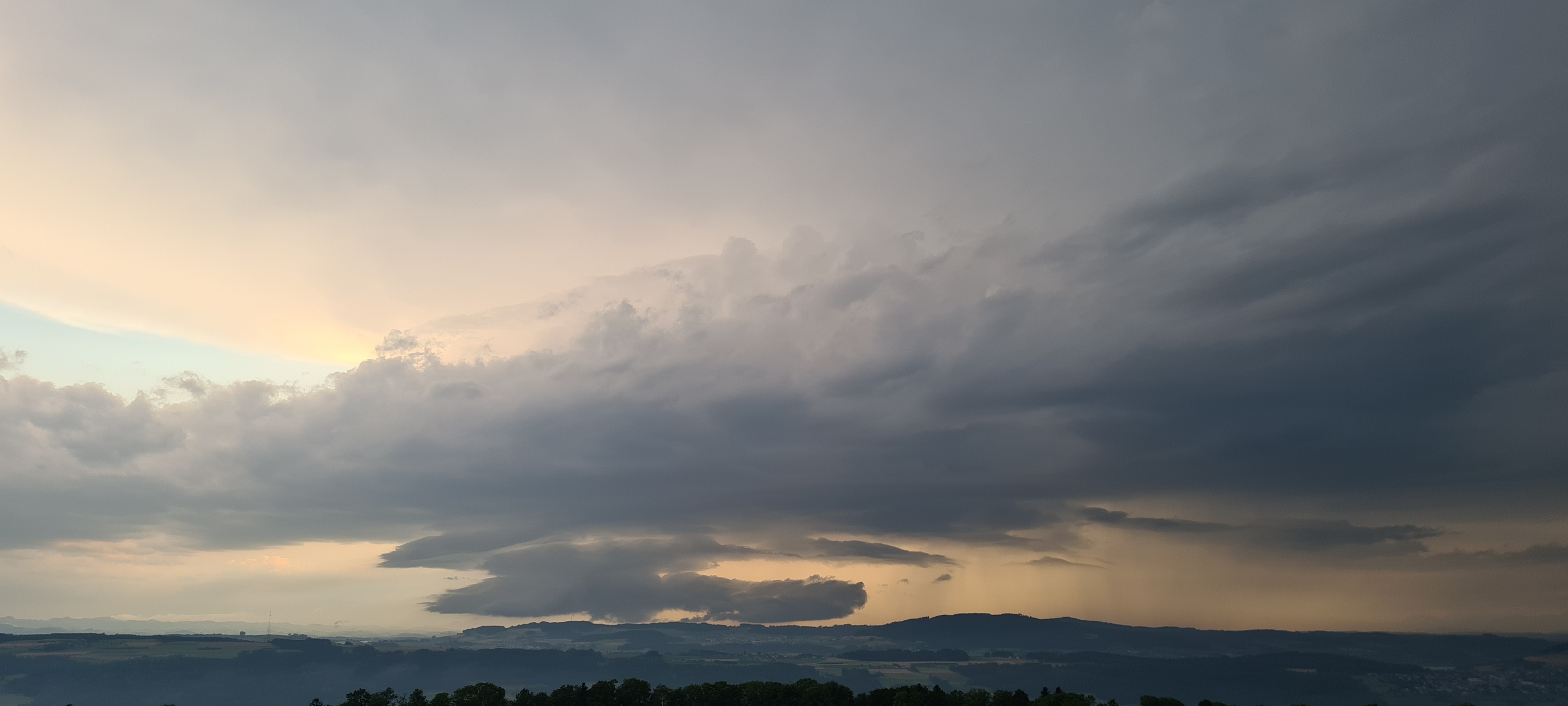 Ich war vorher oberhalb des Pfäffikersees um den Anzug der Superzelle zu beobachten. Leider konnte ich ihr noch beim sterben zusehen. Habe ca. 250 Bilder geschossen, aber nur eines davon ist etwas geworden. Aber ich finde alleine für dieses Bild hat es sich der Ausflug gelohnt