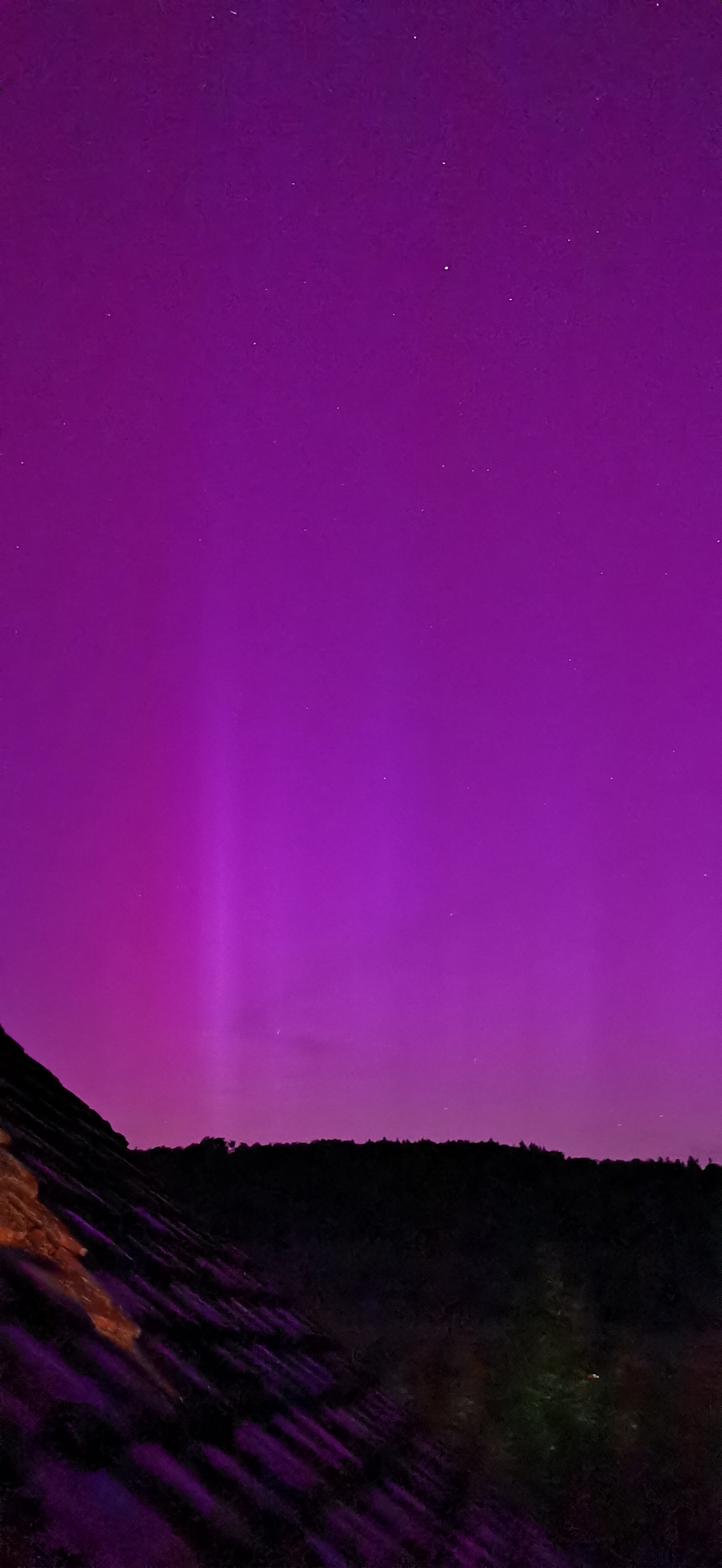 Die erste Phase nach 2200 Uhr war weniger intensiv als dann die 2. die vor Mitternacht startete und bis gegen 01.30 Uhr ging. Da war der Himmel bis ca. 40° Süd alles rot. Die Beamer gingen bis über den Zenit raus. Beim ersten war es knapp oberhalb des Polarsterns fertig. Die Farben waren so fantastisch.