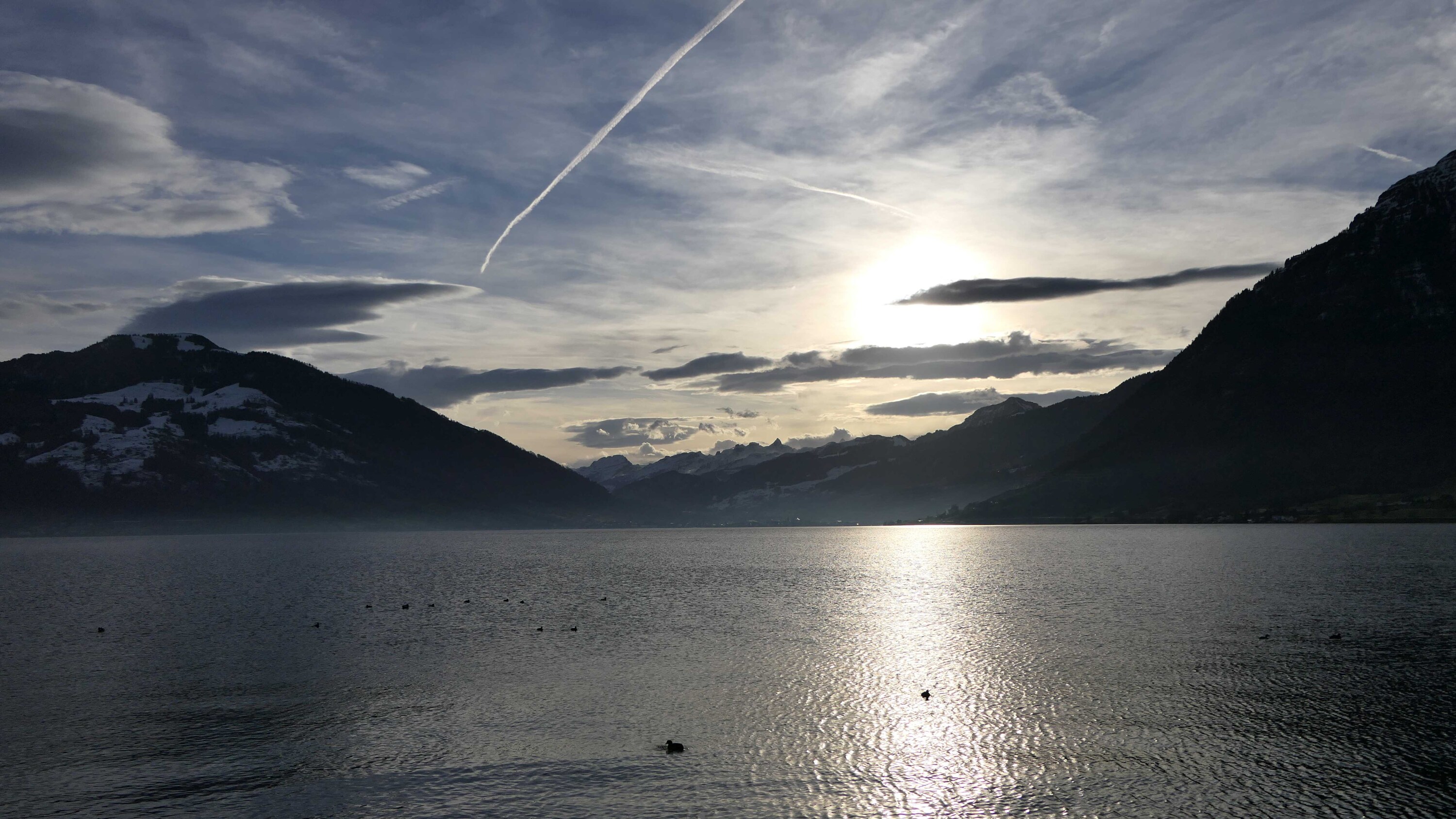 Nach der Warmfront gab es einen Föhnsturm mit einer Luftdruckdifferenz Kloten-Lugano bis 14 hPa während der letzten Nacht bis heute Morgen. Hier ein paar Bilder. Auf der Fahrt nach Brunnen habe ich einen ersten Halt in Immensee gemacht.