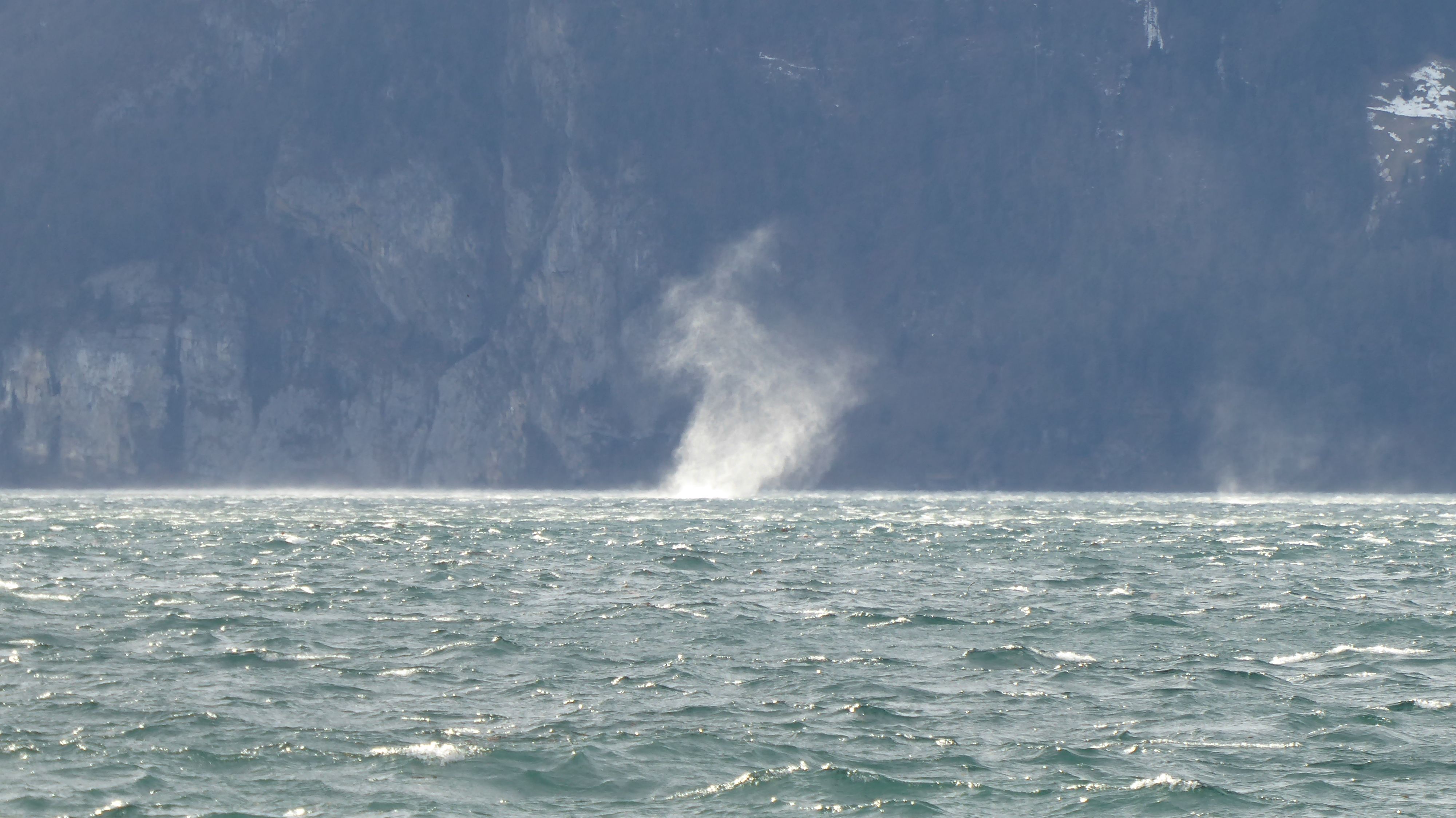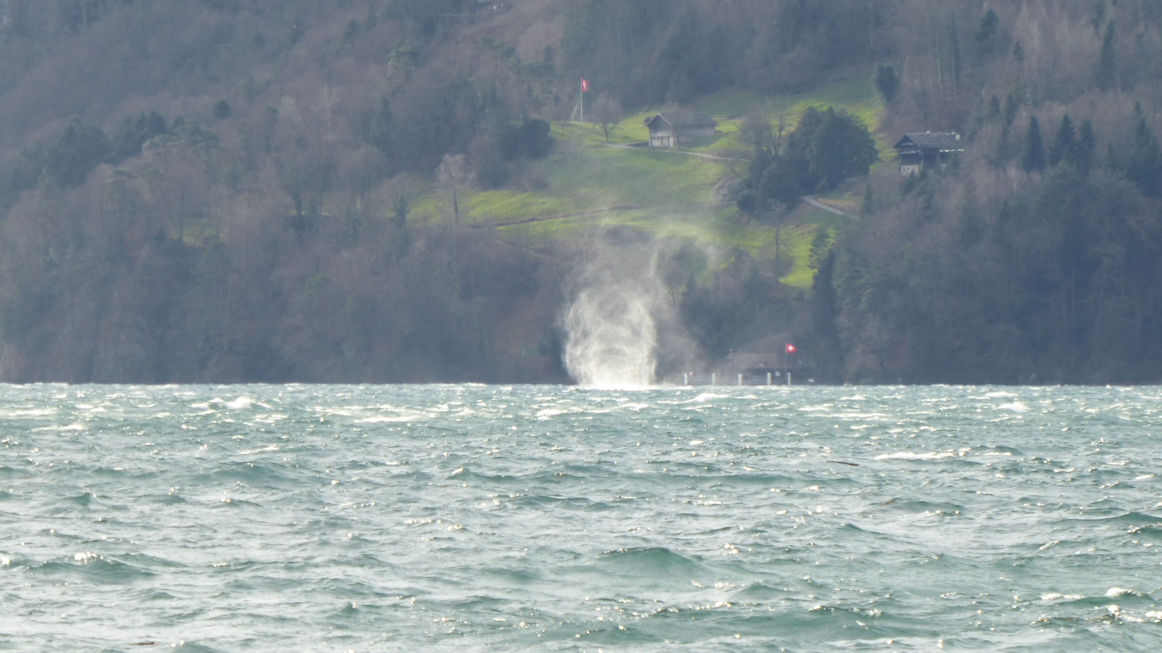 Zu der Zeit als ich da war hat der Sturm bereits etwas nachgelassen. Ganz weit im Urnersee draussen bildeten sich alle paar Minuten noch der eine oder andere Wasserteufel.