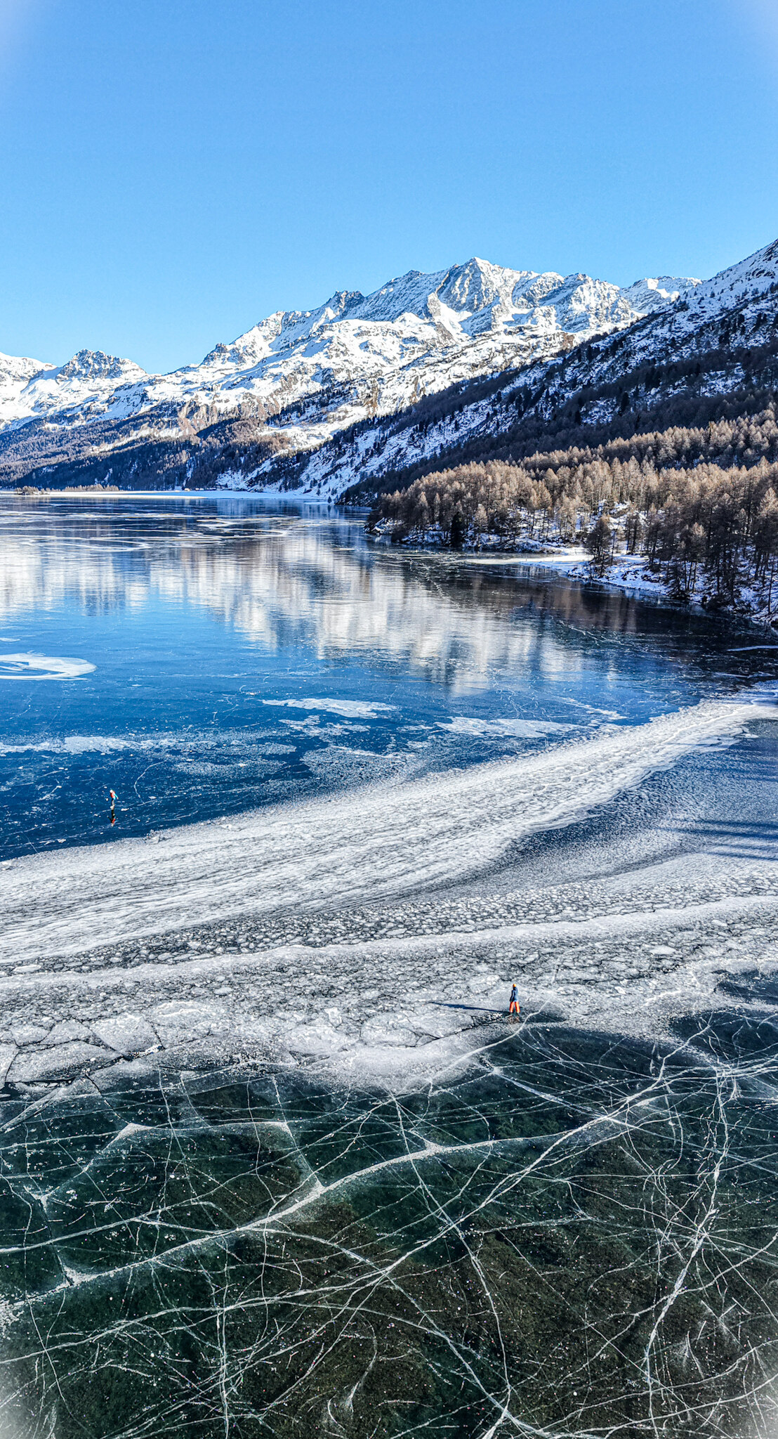 Ich erlaube mir mal noch ein Bild von Sonntag hier zu posten (die lokale Quelle hat Schwarzeis aufdem SilserSee vor ein paar Tage gemeldet, daher kurzentschlossen zwei Tage gegönnt um mir das anzuschauen, nach Angaben der Bewohner vor Ort, gab es das in der Fläche erst 2-3 mal so in den letzten 40 Jahren). Am Sonntag hats dann doch viele Leute aufs Eis gezogen (primär bei Sils und Plaun da Lej), aber es war ein Schauspiel für Augen und Ohren bei knackigen Temperaturen und mit Wind nochmal frostiger (gestern morgen auch wieder -22° in Samedan) . Gut dem Nebelgrau am See gestern nochmal einen Tag abzutrotzen.