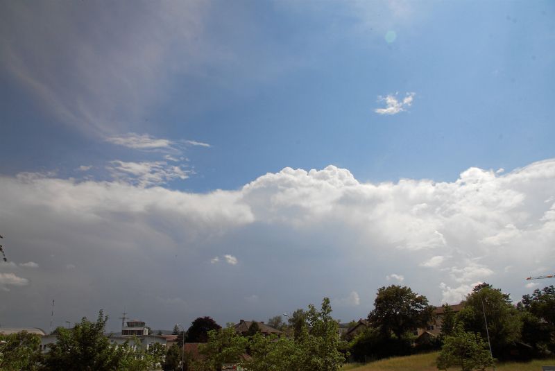 war heute Mittag im Raum Donaueschingen unterwegs. Die Zelle hier brachte stellenweise (ortsteil Wolterdingen) extremen Niederschlag und Hagel (ca. 1 cm und ggf. größer - habe dem Autoblech zuliebe dann umgedreht ...) Hatte leider keine Kamera dabei.