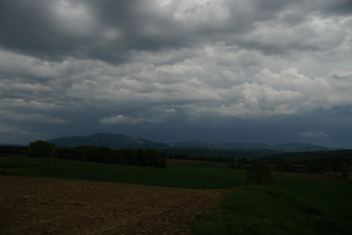 Danach fuhr ich nach Hause und war gegen 18 Uhr wegen der Neubildungen am Vogesensüdfuss nochmals unterwegs. Die erste Zelle machte aber über den Vogesen schlapp und von der Basler Zelle war (noch) nichts zu sehen. 18:30 Uhr: