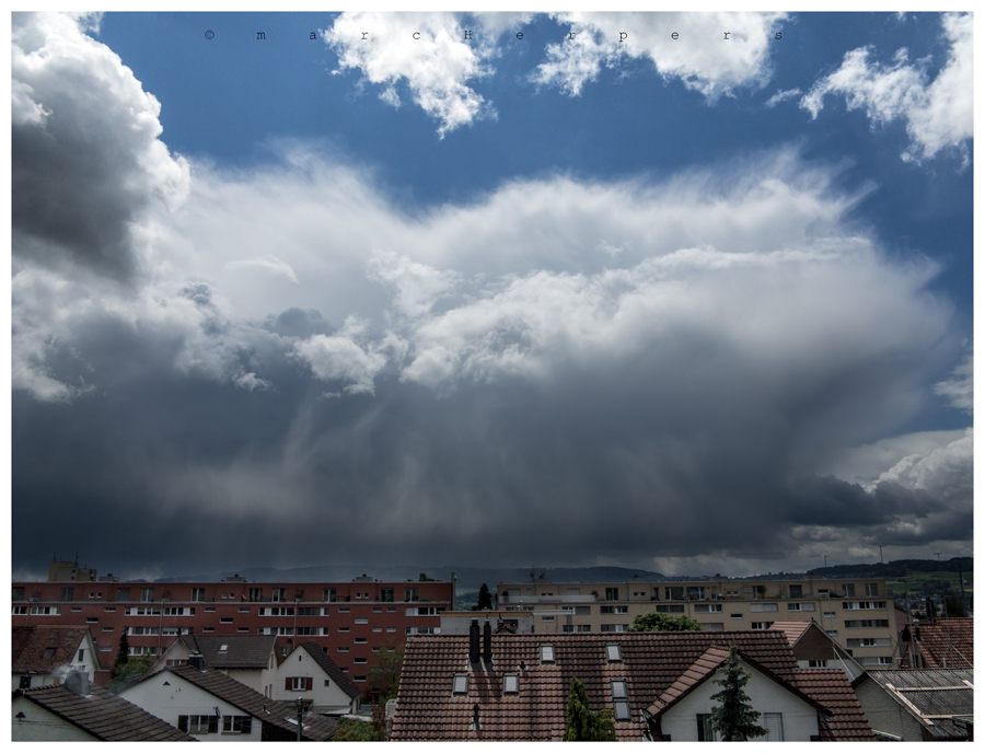 Yop, bin gerade vom Bahnhof Uetikon heimgelaufen und hab dicke Tropfen abbekommen. Steuer gerade auf mich zu. Herrlich anzuschauen. Rundherum die Sonne (Rötlich) und wie ein Schnitt... Kreisrund die Zelle. Donnern intensiviert sich in den Sekunden (jetzt alle 10-20Sec Donnern).MarcHerpers hat geschrieben:Herrliche Wetterszenen am Himmel heute, ich dachte dieses Bild gibt die Stimmung oberhalb von Uster / Pfannenstil sehr gut wieder. Wie eine Wolken Polonaise immer wider die gleiche Szenerie. Dazu auch ein wenig Hagelkörner in Uster am NM. Jetzt 19:30, erneut ein paar Donner und Blitze am westlichen Pfannenstil wahrnehmbar.