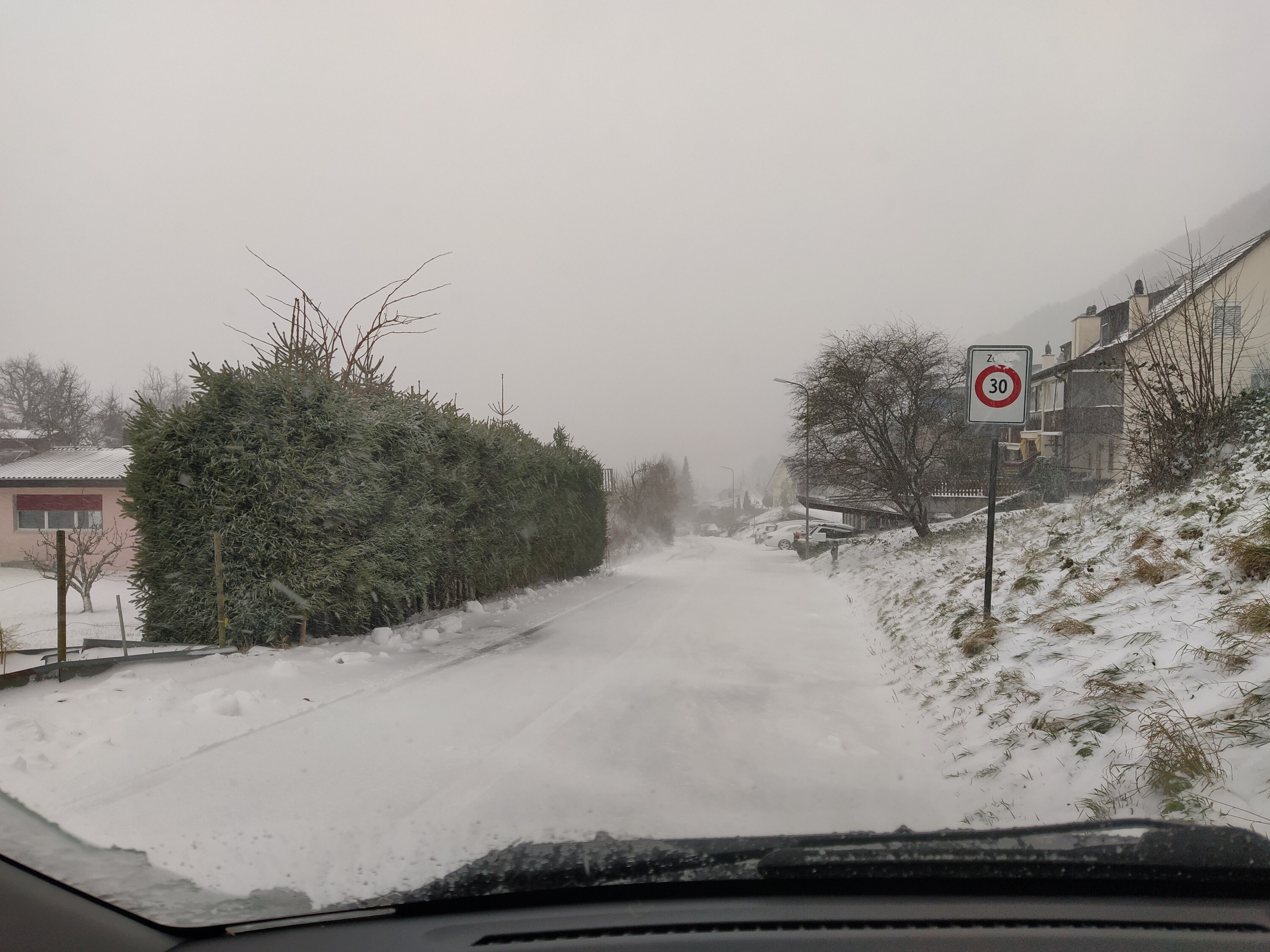 Bereits sind ca 2cm Neuschnee gefallen, bei den Temps und Intensität sind auch die Strassen alle weiss.