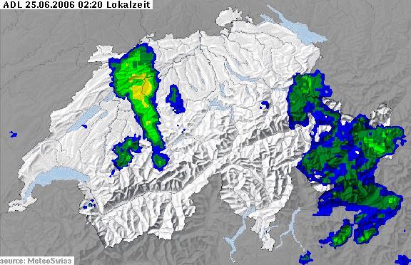Leider gibt es keine Velocity Bilder, da das ETH Radar defekt ist, aber die Zelle (oder Zellenkomplex) war zu dem Zeitpunkt auf ihrem Höhepunkt und zeigte grossflächig Hagel an.