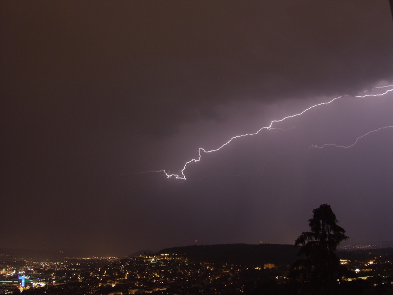 Ich bin mit dem Mofa aufn Aussichtpunkt gefahren, zuerst starker Wind, danach leichter Regen. Aber die Blitze, die waren unbeschreiblich all drei Sekunden ein Erdblitz wirklich extrem. :O