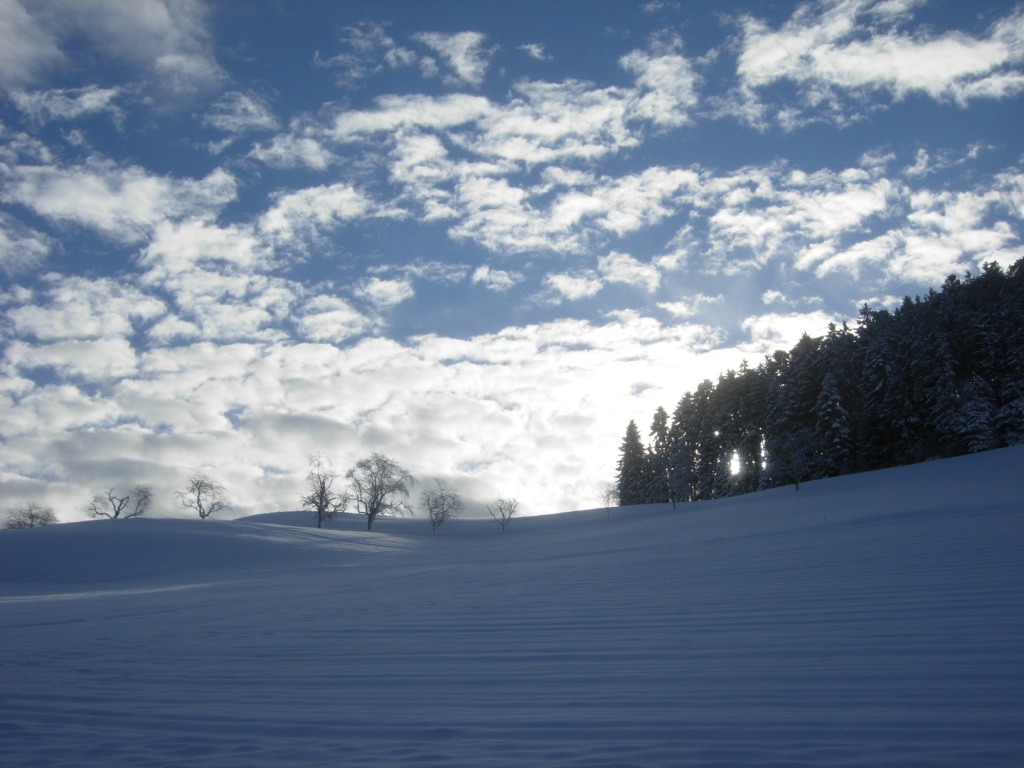 Mit der Schauerlinie hats nun geklappt - weitere 3cm Pulver sind dazugekommen. Somit liegt jetzt die höchste Schneehöhe vom bisherigen Winter mit 22cm. Da kommt Winterfeeling auf, ums Haus kurven die ersten Langläufer...jetzt fehlt nur noch die knackige Bise, dann könnte man mit alten Skis sogar Schnee-kiten :-)