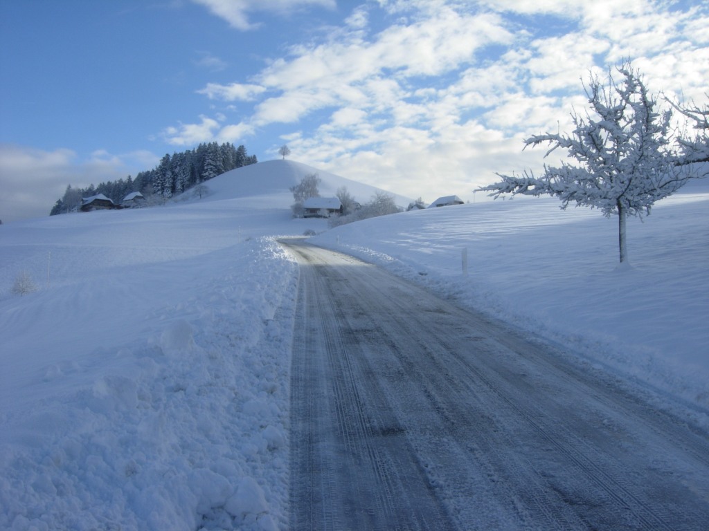 Wie in Wichtrach kommt es hier häufig vor, dass wir keinen Schnee oder nur wenig Pflosch haben, während nur 100m höher alles weiss ist. So wie heute.