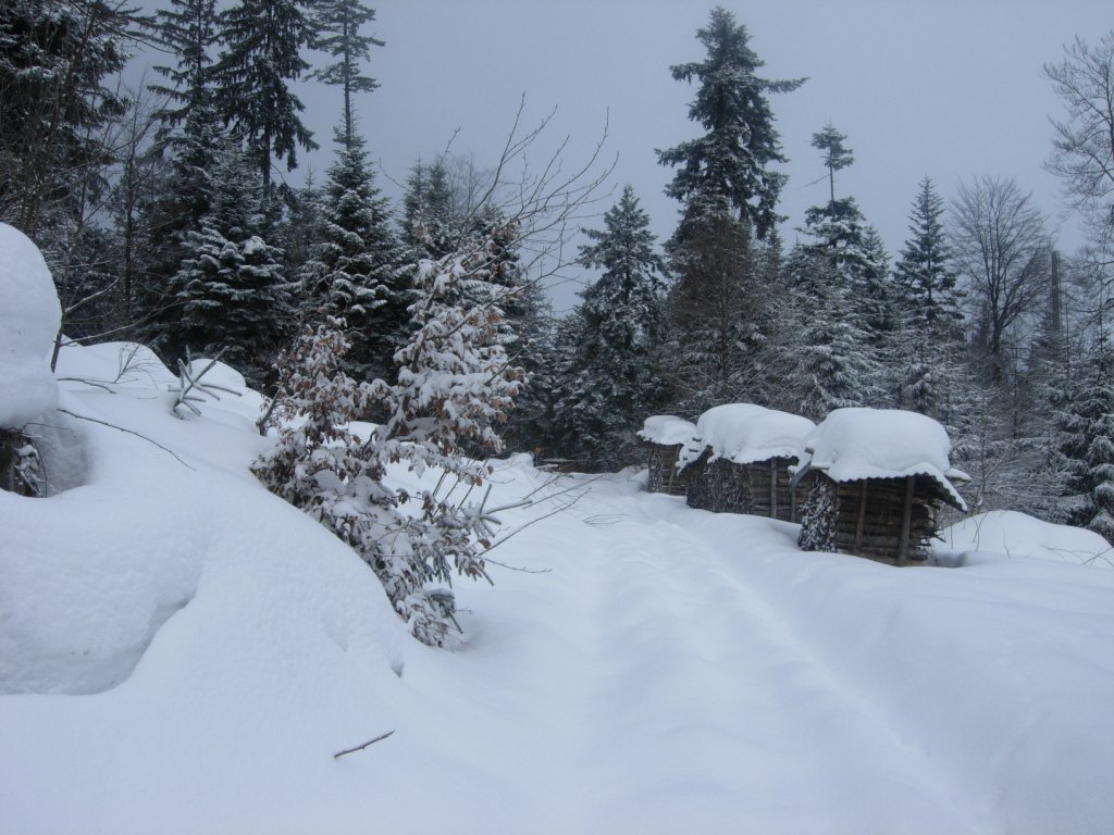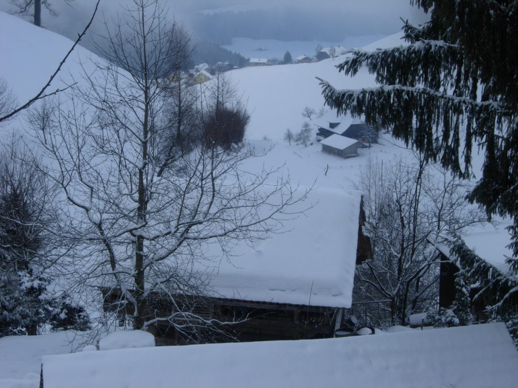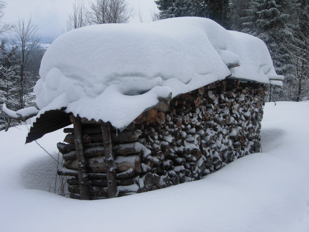 Über die Nacht ist deutlich weniger Schnee gefallen, als ich gehofft habe. Somit war diese Westlage insgesamt negativ: Von 38cm gestern Morgen sind heute trotz ca. 6cm Neuschnee nur 34cm übriggeblieben. Anders etwas höher in unserer Gemeinde: Dort lagen noch 70cm Schnee (!) :