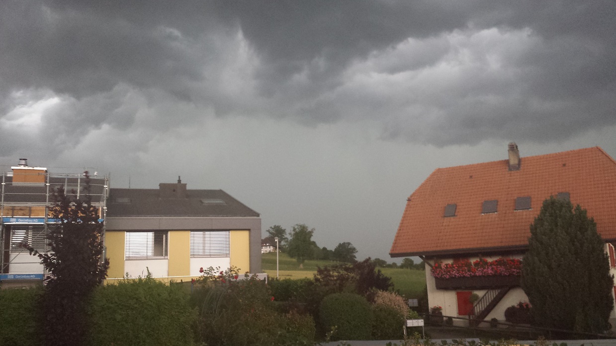 In Oberfrick extreme Blitze schon, einmal schon ist der Strom ausgefallen. :shock: