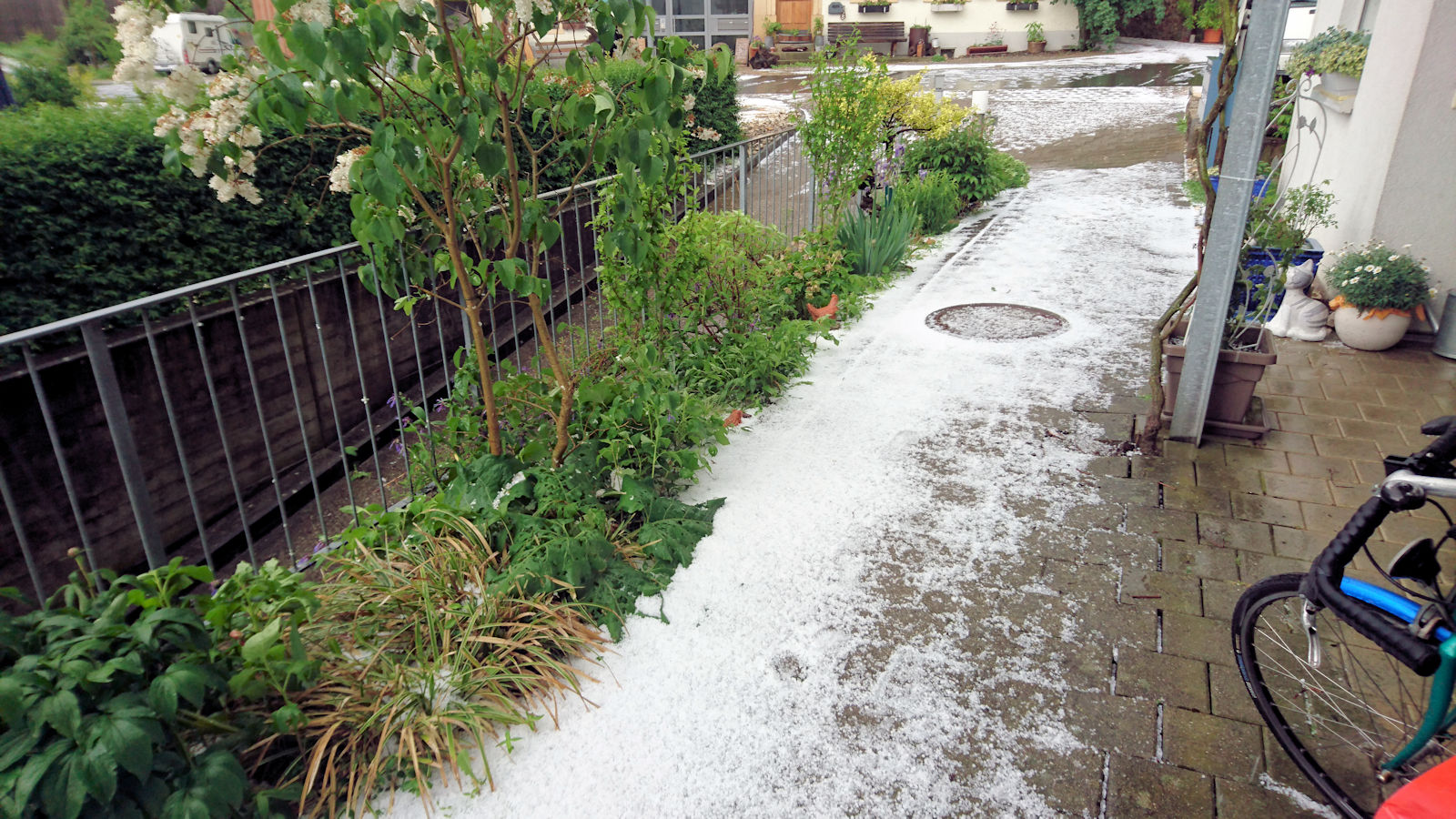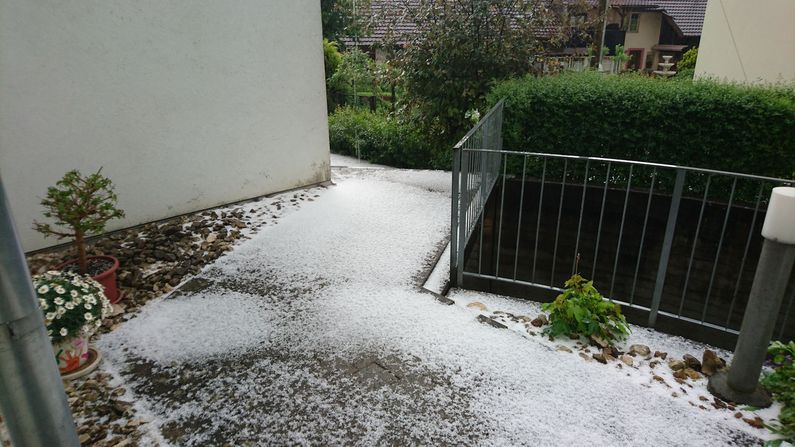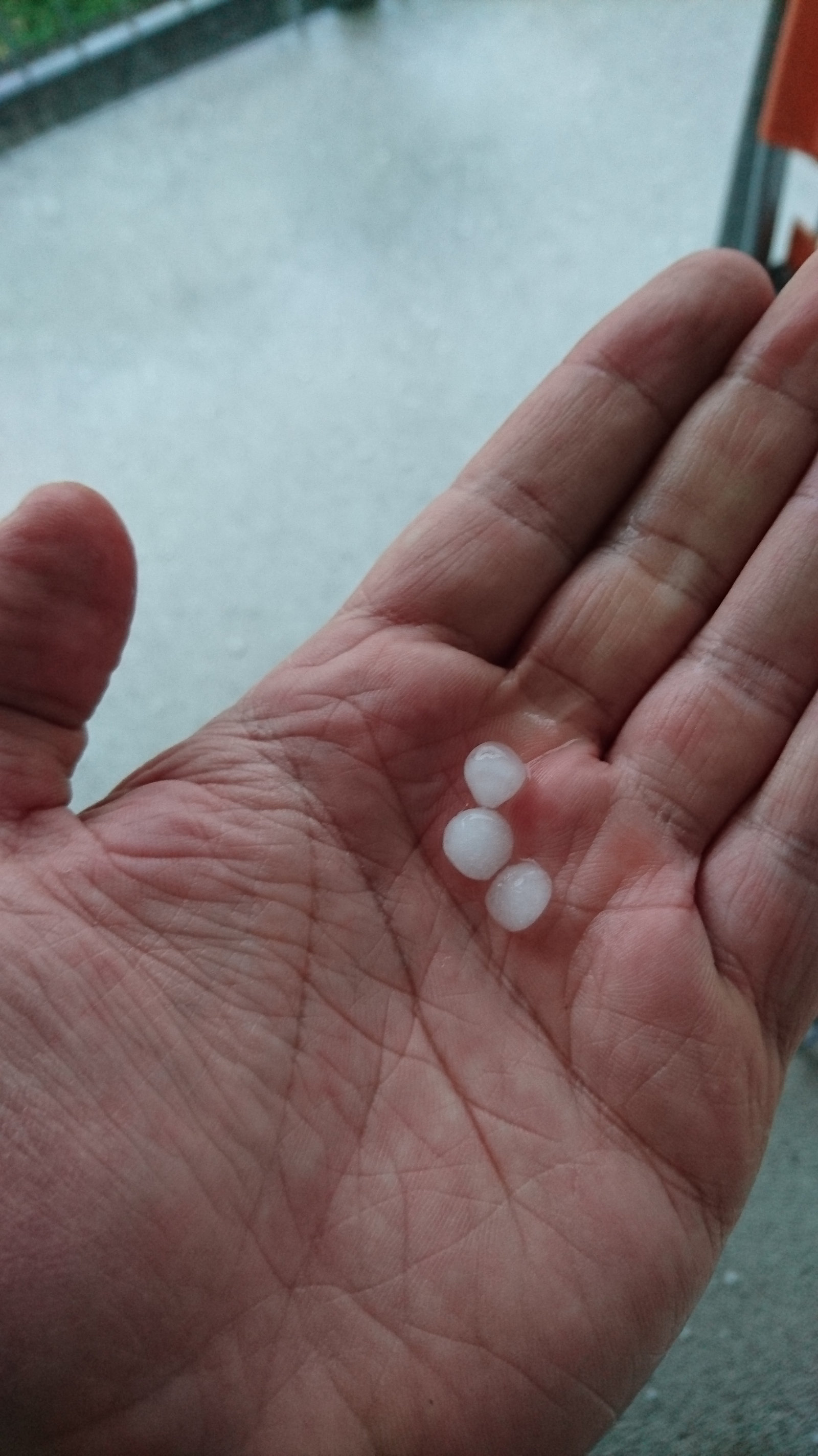 Aber sehr viel Niederschlag mit kleinen Hagel war dabei, Hagelkörner bis 1cm sonst 0.5-0.8cm