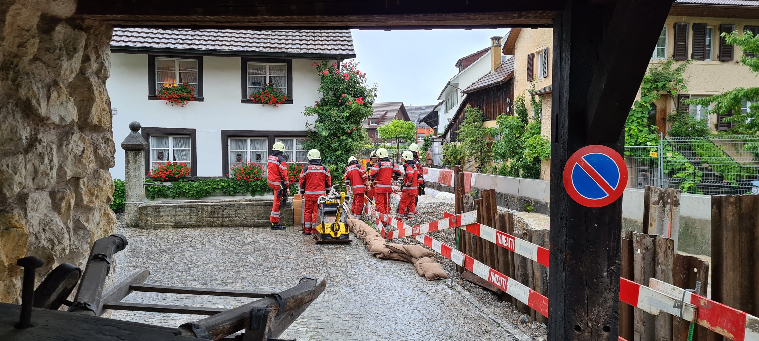 Die Feuerwehr war auch ausgerückt um die Baustelle zu sichern: