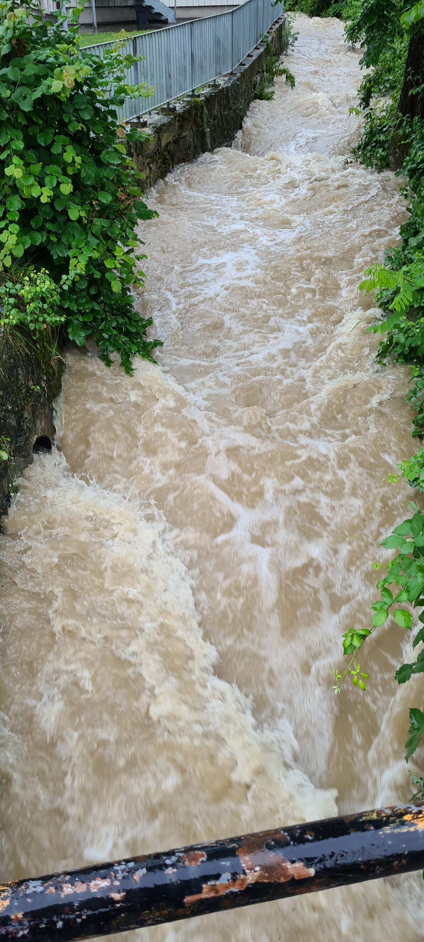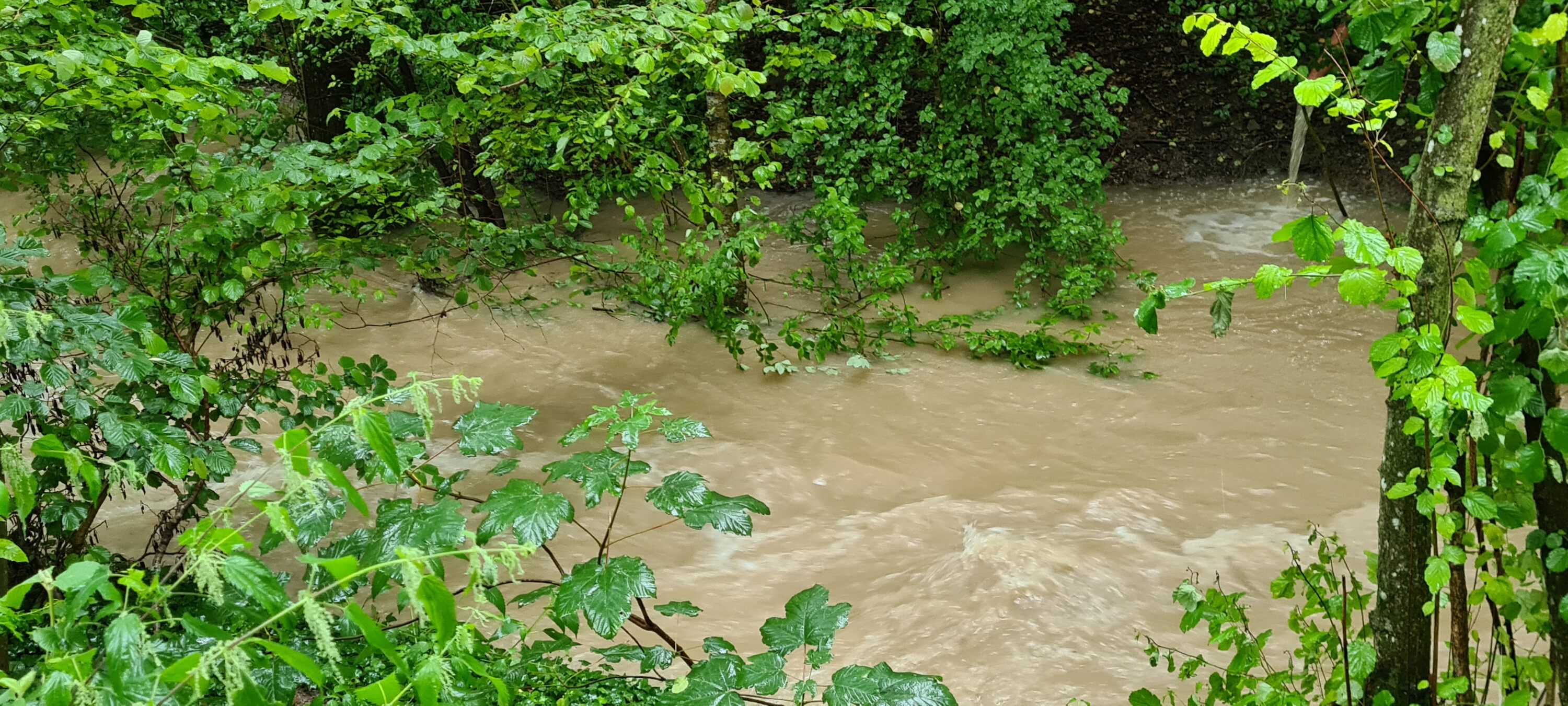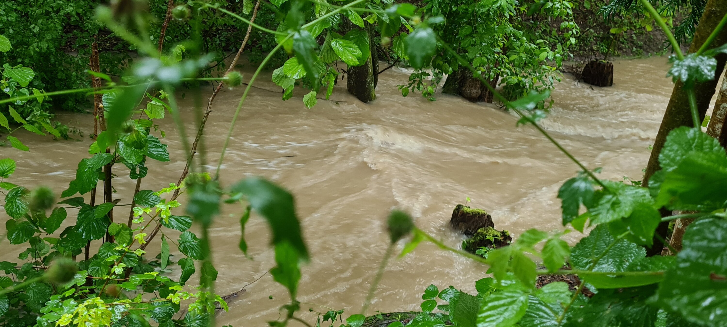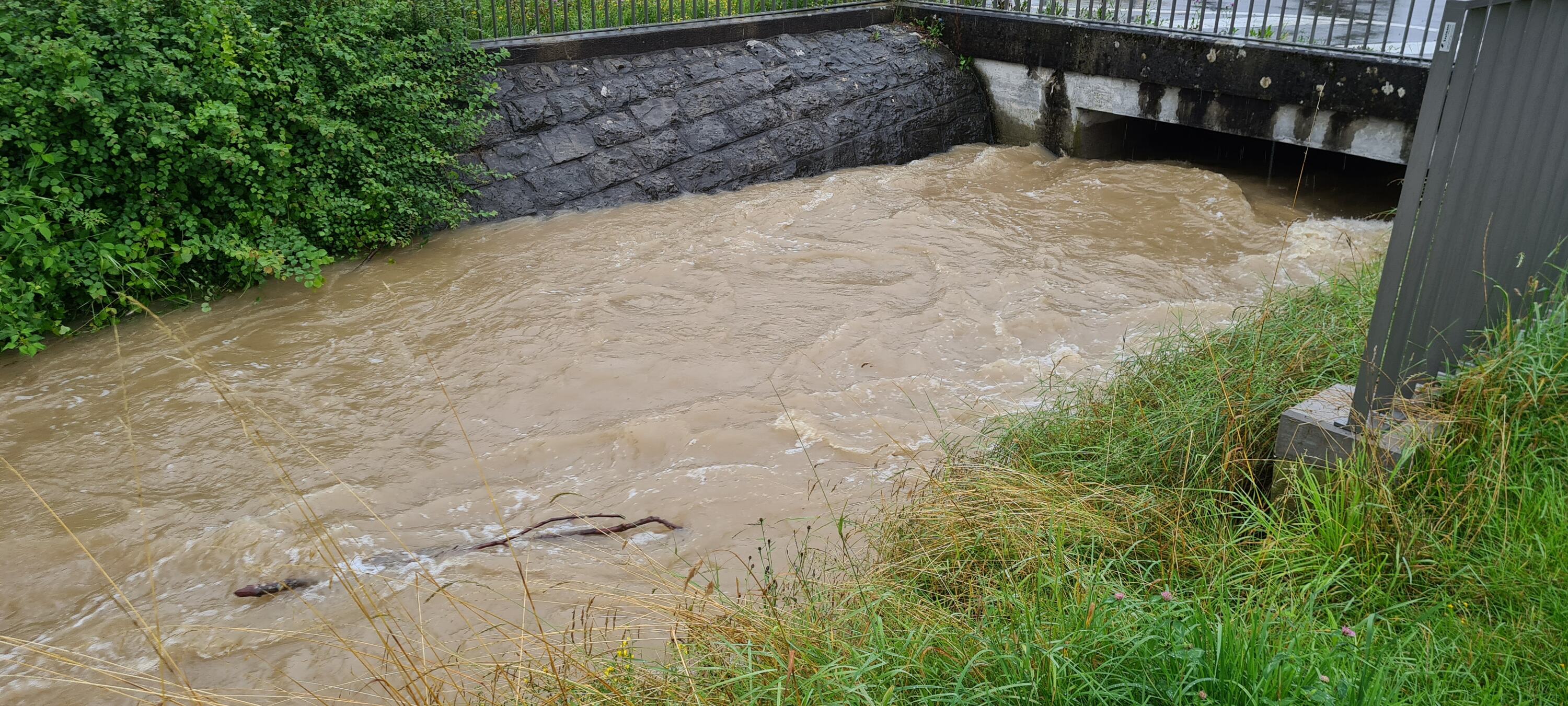Heute Nachmittag mit dem Dauerregen sogar noch etwas höherer Wasserstand: