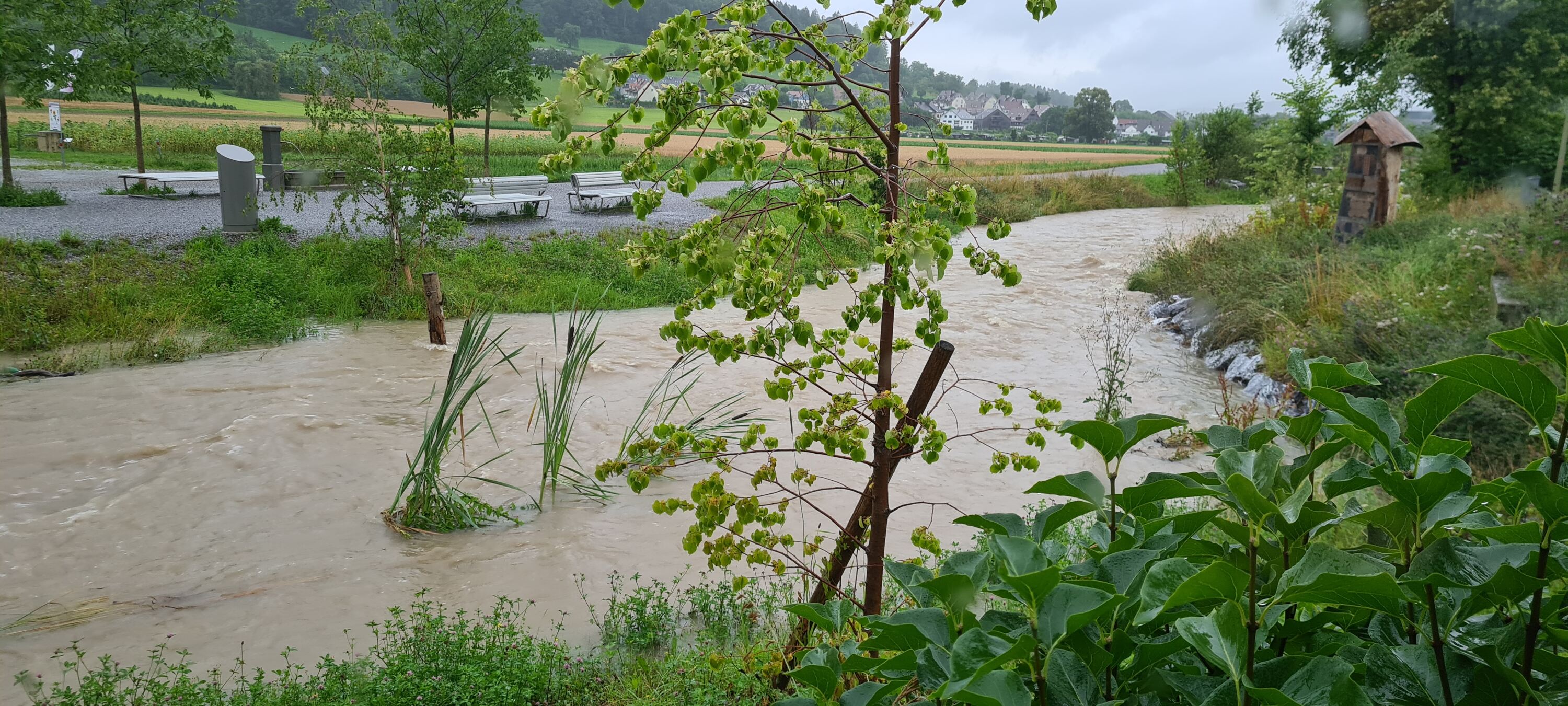 Regenende in Sicht in Sellenbüren, nach über 50 mm in 15 Std. (ehm, über 70mm, nicht 50 mm, siehe oben