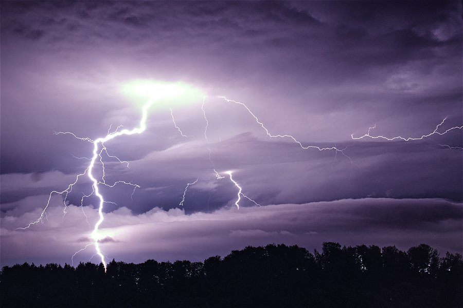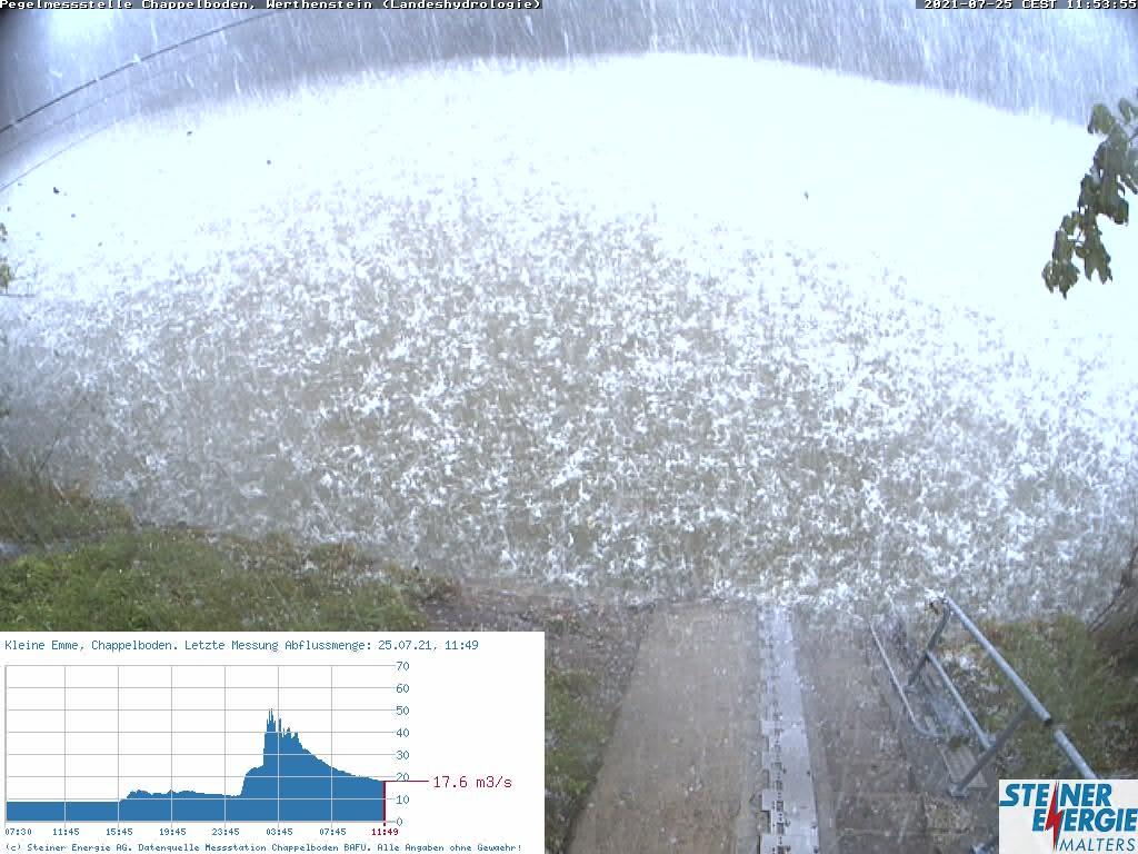 Bei solchen Multizellen "Popcorn"-Gewittern ist es im Prinzip am gefährlichsten zu chasen...; das wurde mir vorhin wieder mal richtig bewusst. Ich fuhr entspannt nach Dürstelen zu meinem Spotterplatz und installierte meine Kamera. Die Säuliamtzelle noch weit weg.... Nur wenige Sekunden bevor ich fertig war mit dem Einrichten zuckte plötzlich ein gleissend heller CG westlich von mir in den Boden. Auf dem Radar sah ich, dass dieser als Erster aus der sich neu gebildeten Zelle bei Russikon kam. Die grössere Zelle überrollte mich etwas später. Doch mein Spotterplatz hüllte sich in Nebel ein, der vom Pfäffikersee hinaufgeschoben wurde. Sichtweite 20 meter, vielleicht 30 meter.... Es wird einfach nur taghell und gleich darauf Rumms...