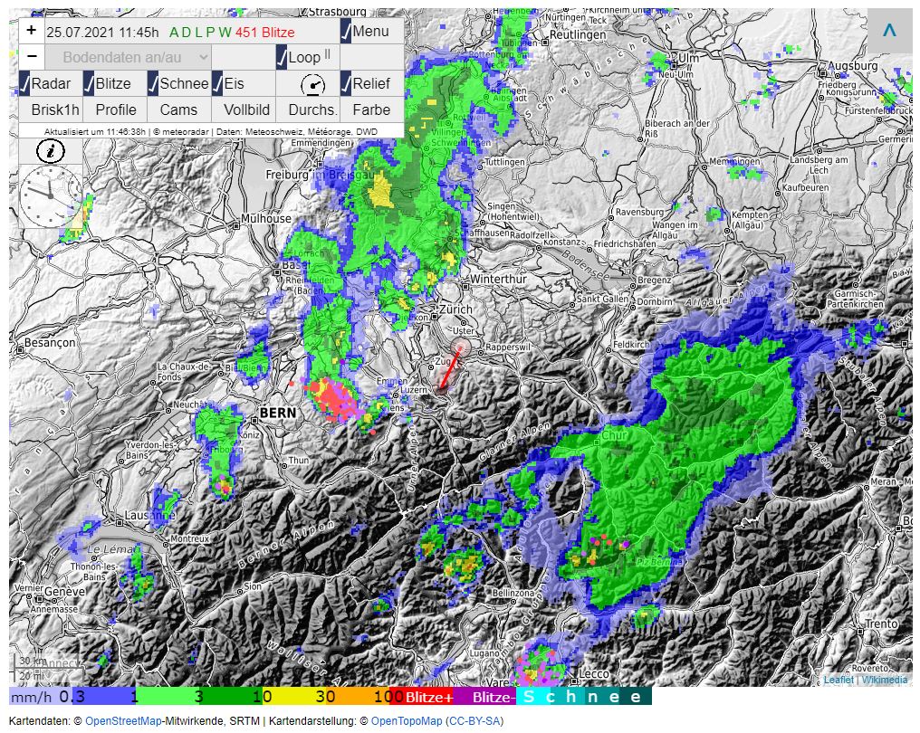 Wenn ich das Zoom Radar Archiv richtig interpretiere, war die Zelle bei Rotkreuz später der Volltreffer von Appenzell.