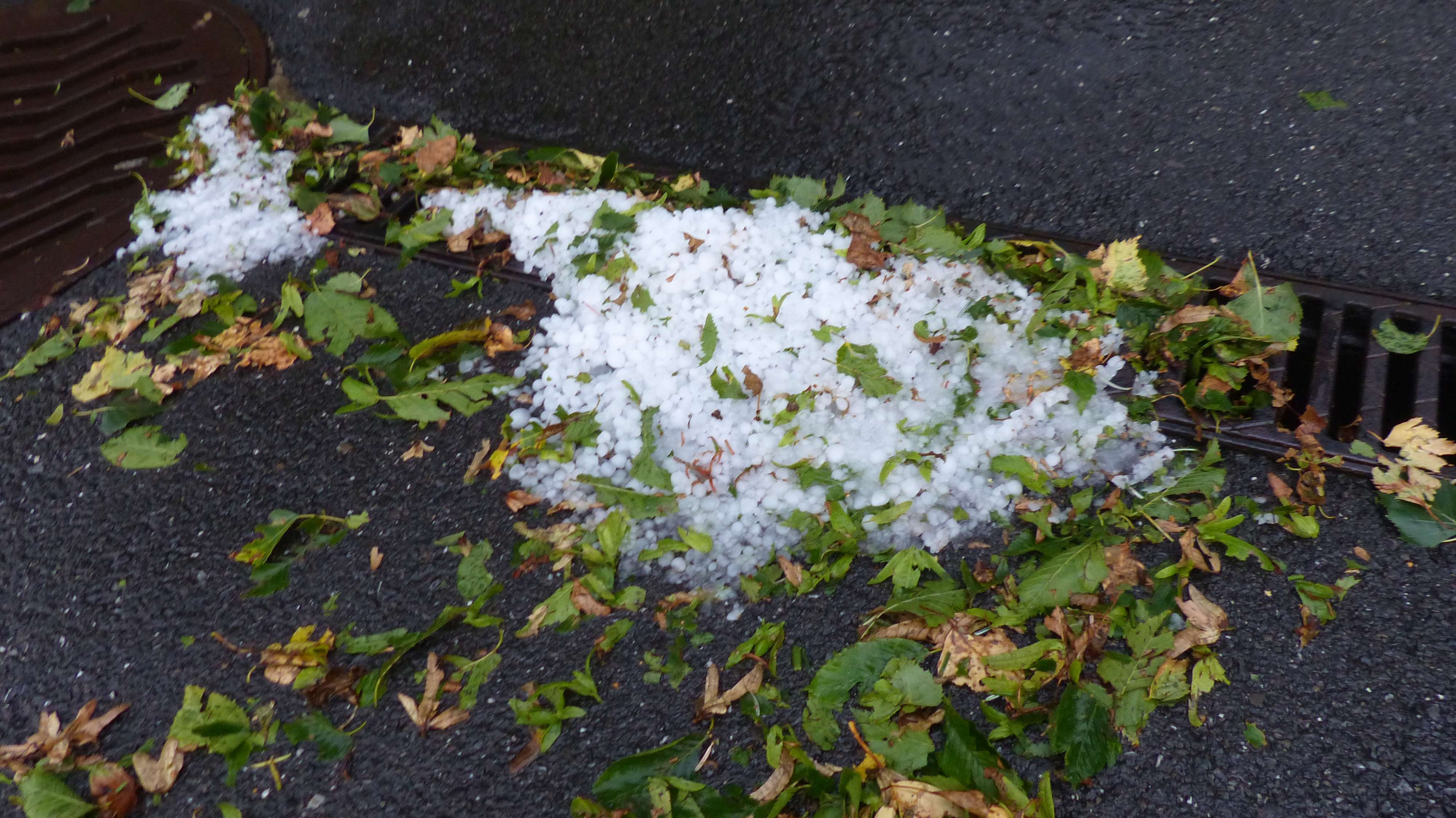 Die Hagelkörner waren ca. 1 – 1.5 cm gross.