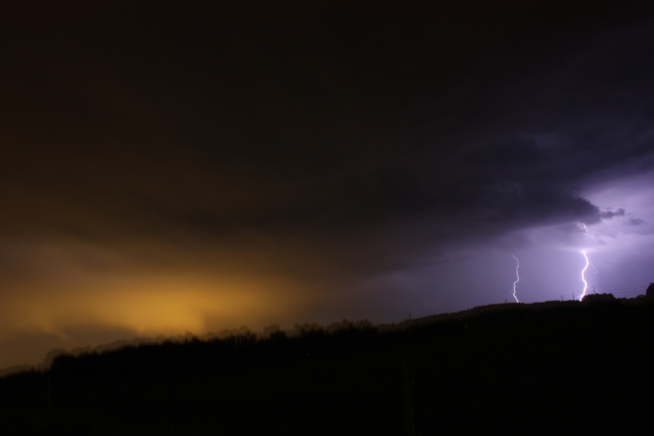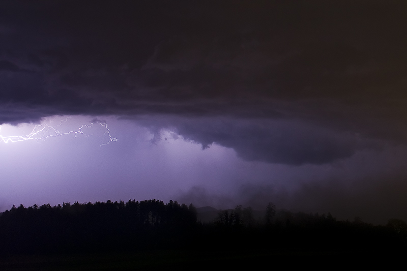 In Würenlos beschloss ich dann mein Glück hinter dem abziehenden Cluster zu versuchen und machte mich auf den Weg zurück Rtg. Kyburg/First. Unterwegs eindrückliche Blitze, viel Wasser auf der Autobahn und dementsprechend schlechtes Vorwärtskommen im dichten Ausgangs-Verkehr. Oben angekommen, hatte ich dann zuerst Kameraprobleme, fand meine Taschenlampe nicht; die nahen CG's trugen am exponierten Spotterplatz auch nicht gerade zur Beruhigung bei. Als ich dann auch endlich die Kamera scharfgestellt hatte, waren die schönsten Exemplare natürlich schon wieder über dem Jordan. Hier trotzdem noch ein paar Zooms: