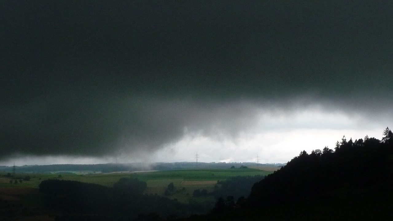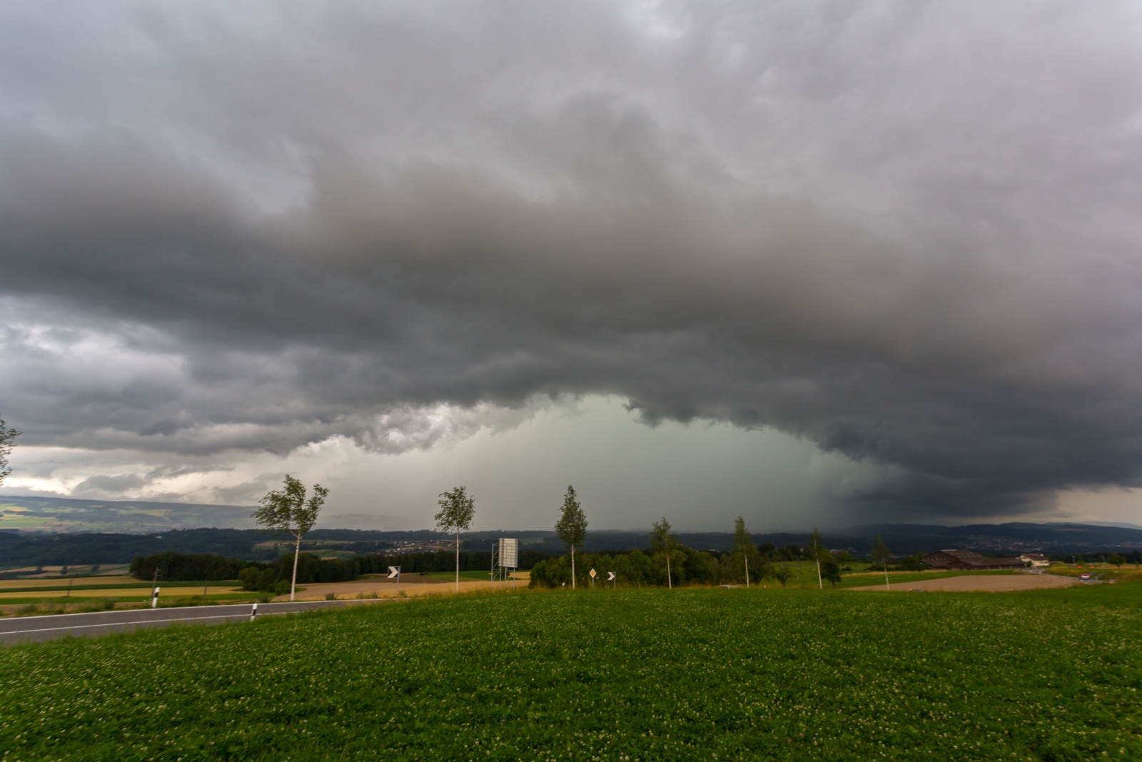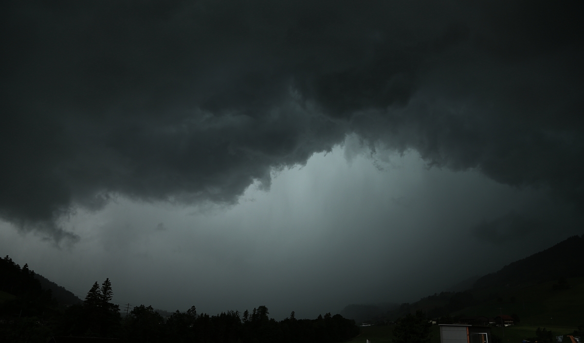 Die Gewitterzelle bei Escholzmatt. Sie wurde vom Schallenberg bis Escholzmatt immer stärker; Inflow dominiert. Zwischen Marbach und Escholzmatt gab es auch ein paar Unwetterschäden.