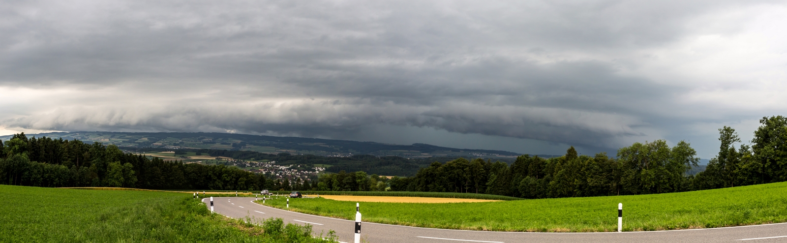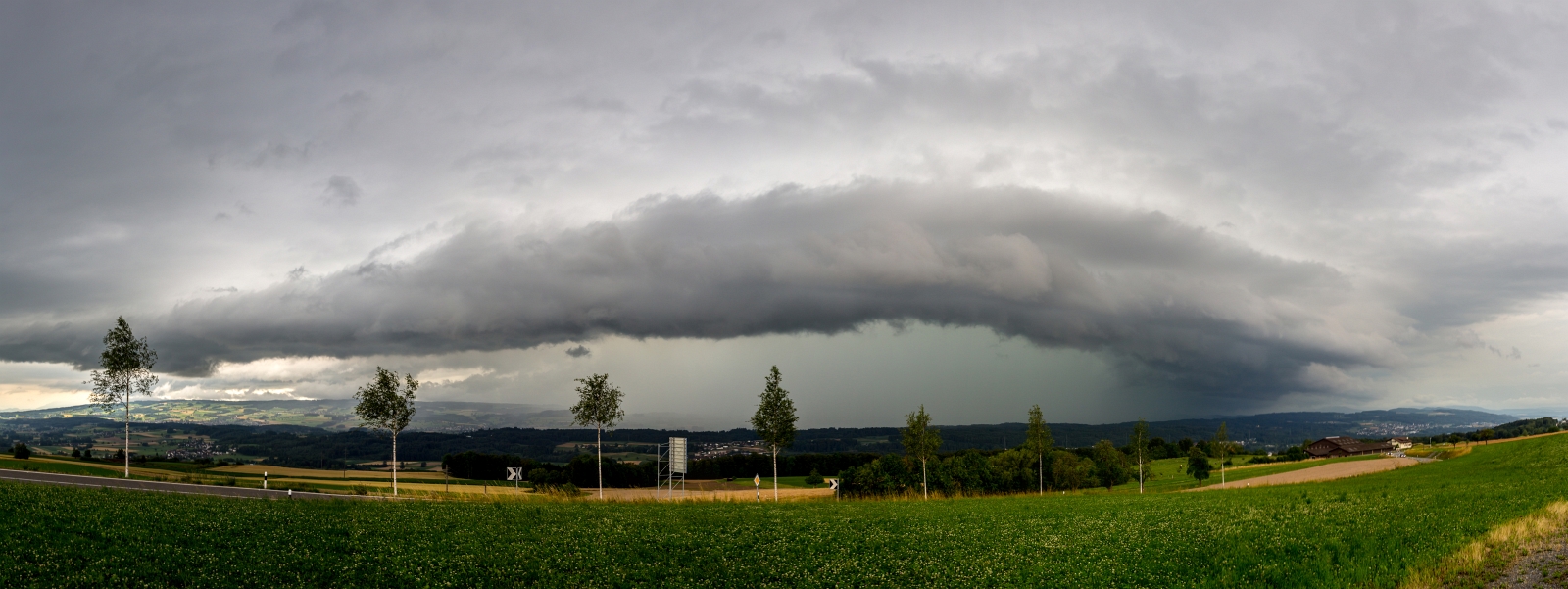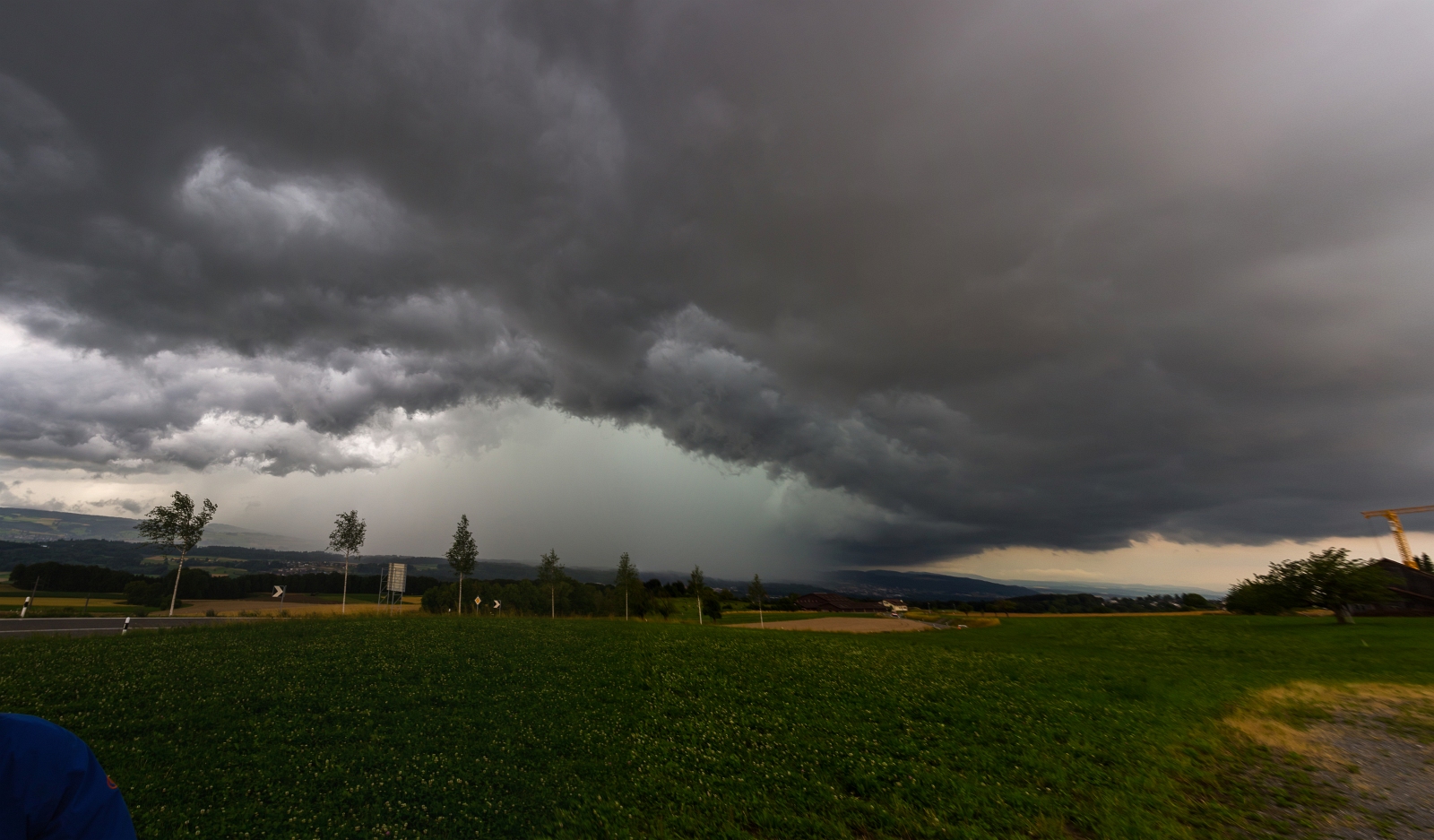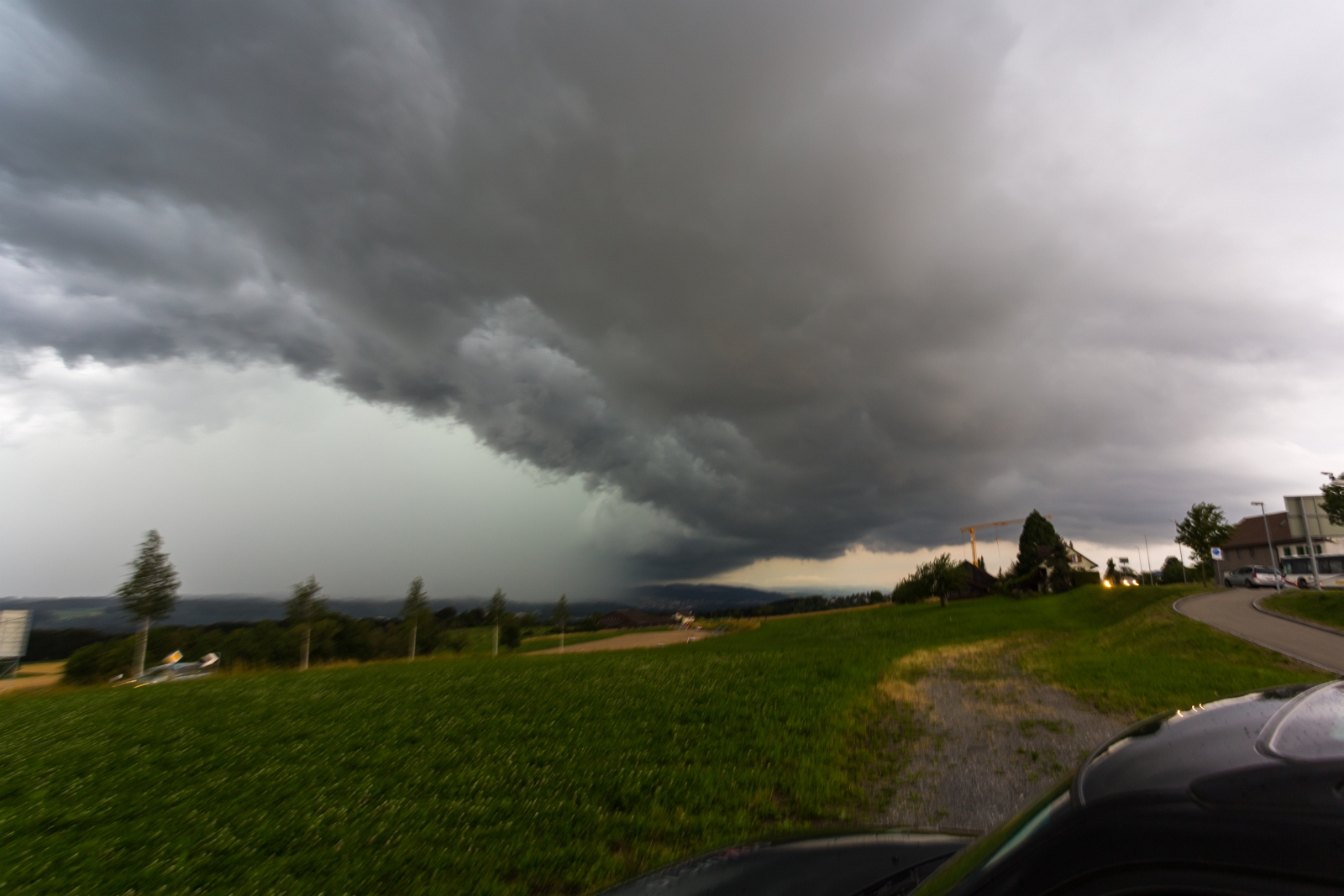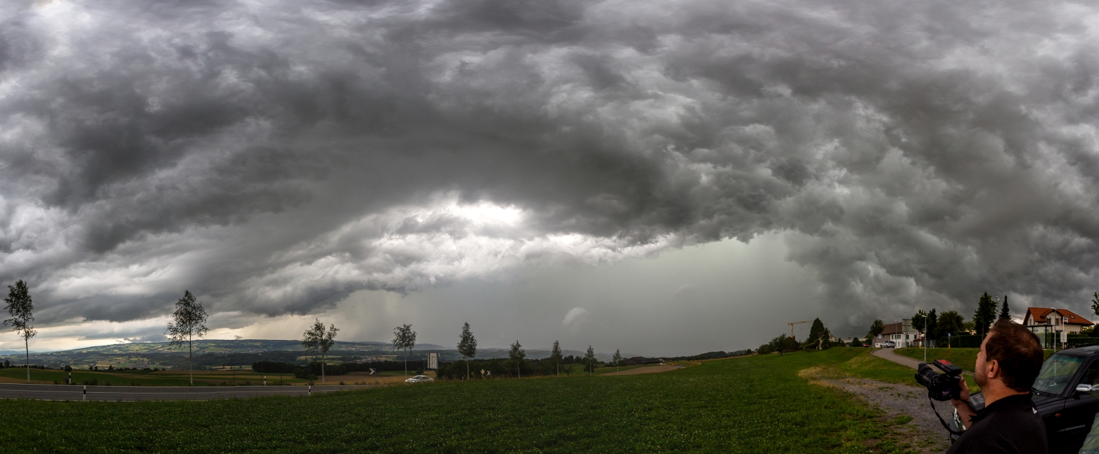Die tolle Aussicht bei Berikon auf die nun outflow-dominierte Zelle konnten wir mit Dominic geniessen (Blick Richtung Nordwest).
