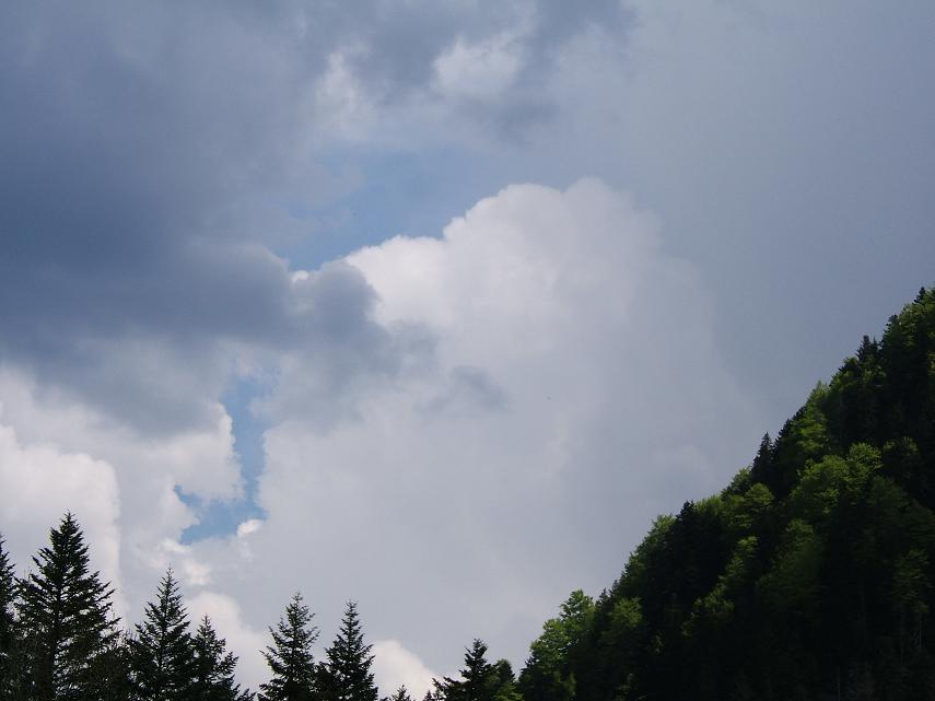 Erste Wolken von Grosshöchstetten aus hinter der Schrattenfluh