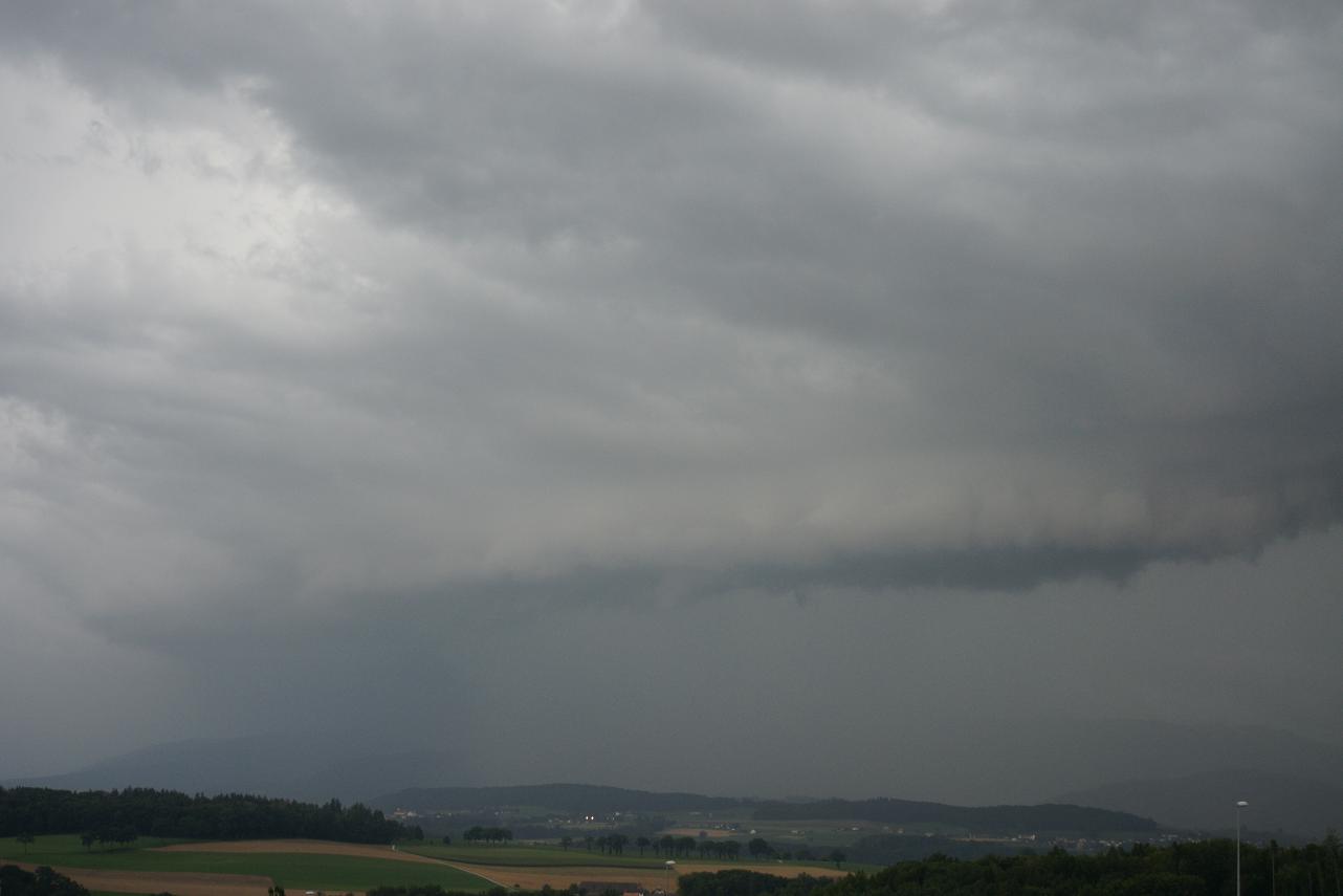 Ich habe heute in Zürich die Ankunft der Vorläufer der Kaltfront fotografieren können. Interessant waren die herunterhängenden Wolkenfetzen, die sich immer wieder schlagartig in einer Linie bildeten. Es war deutlich ein starker Aufwind zur Wolkenbasis zu erkennen. Im letzten Bild entstand ein Wolkenschlauch mit starkem Aufwind. Eine Rotation konnte ich allerdings nicht erkennen.