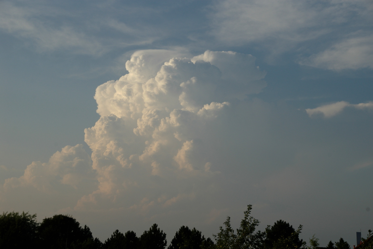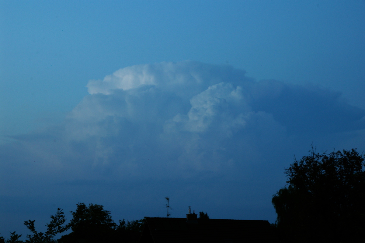 Ein richtiger Hingucker war eine Gewitterzelle am Kaiserstuhl kurz vor Einbruch der Dunkelheit. Sie hatte eine traumhafte Struktur, blitzte flott, konnte sich aber nur knapp 1,5 Stunden halten. Leider hatte ich keine Gelegenheit, diesen Cb-Pfundskerl abzulichten...