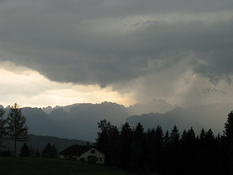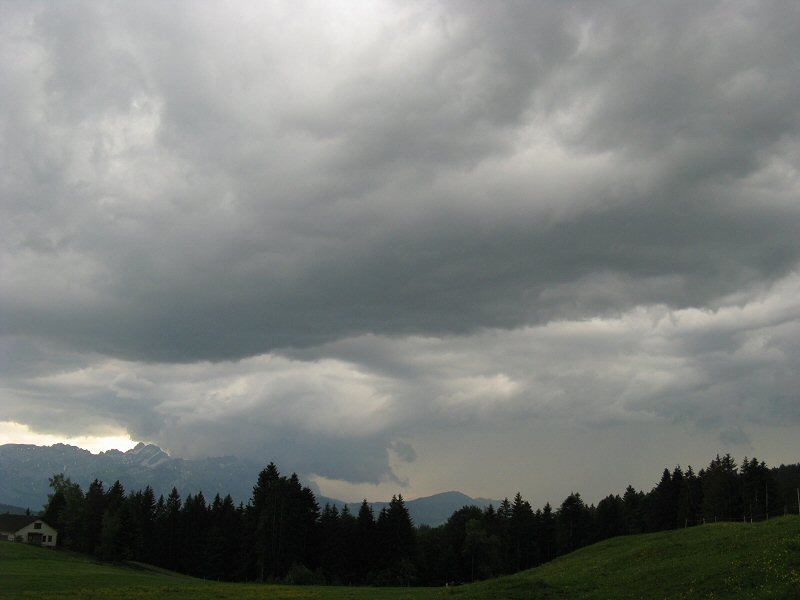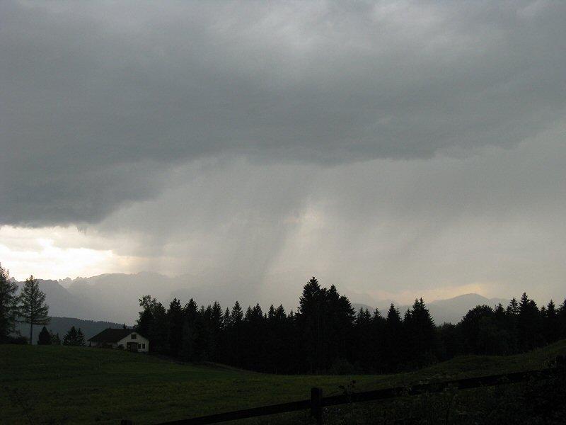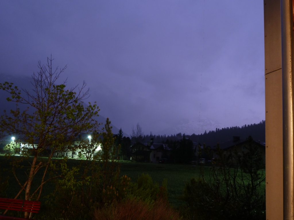 hier noch ein paar unspektakuläre, hinter den Bergen/Wolken versteckte, aber seltene Blitze (!) aus dem Engadin (Bever)..