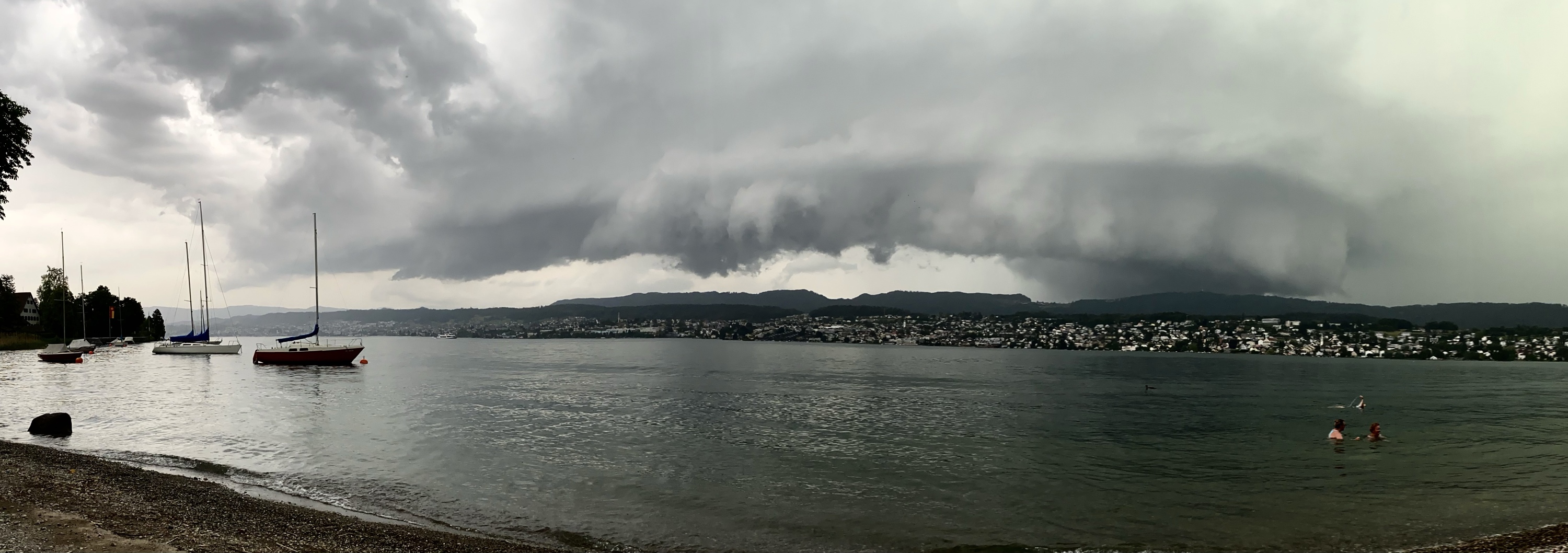 Aufzug der Zelle war hier ziemlich unspektakulär, dank Saharastaub. Also die ganze Sache nördlicher als ich zuerst dachte vorbeizog habe ich mich nahe Russikon platziert. Dort hatte ich einen guten Blick auf die vorbeiziehende Zelle, knapp ausserhalb des Starkniederschlages. Fotos und ev. Video folgen.