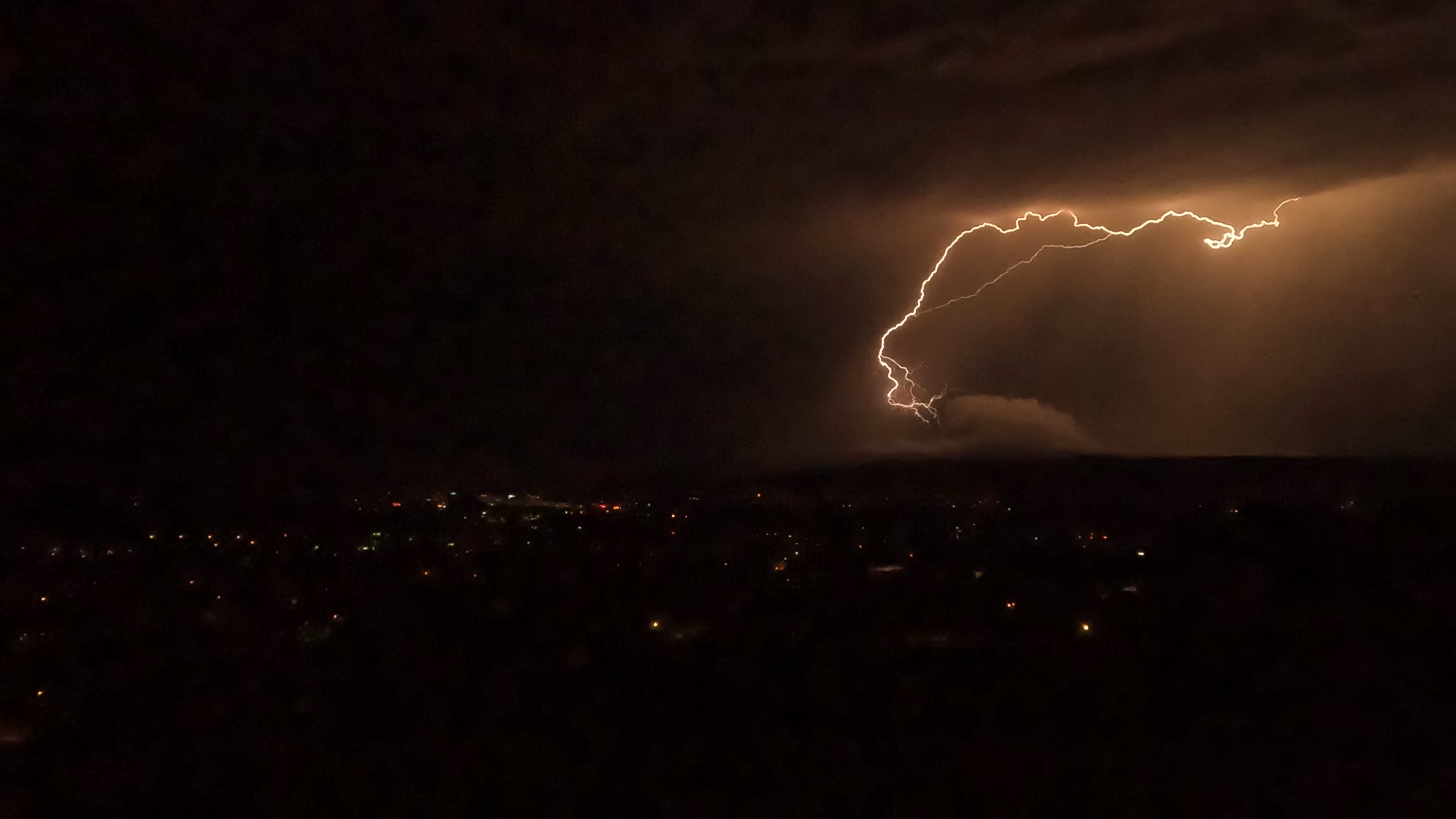 23.37h – Blickrichtung NNW. Es ist schon faszinierend wie ein Blitz die Nacht zum Tag machen kann.