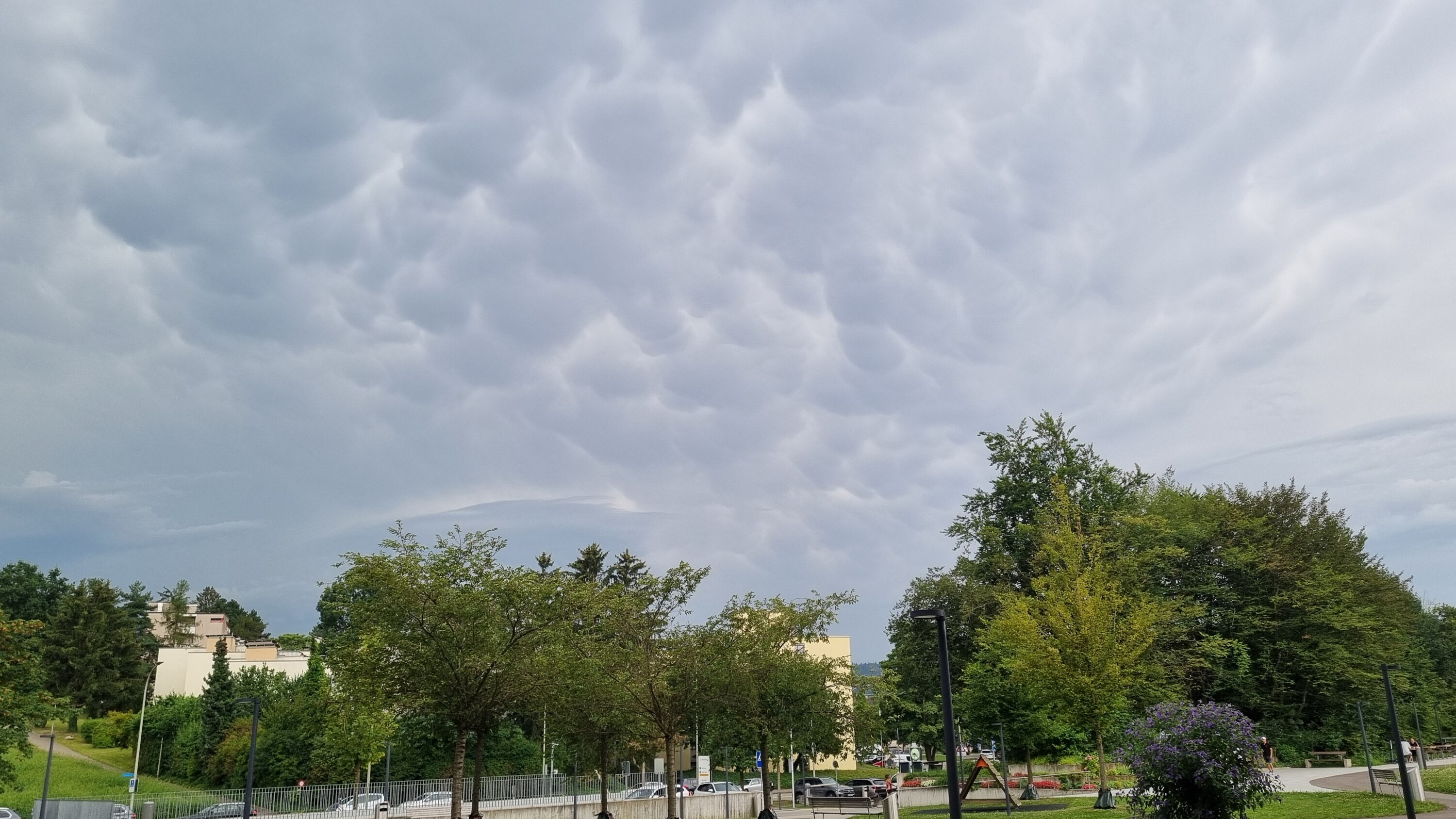 Eben zog ein Giftzwerg durch. Es hat schön geschüttet (7 mm, ohne Hagel) und gerumpelt. Das ist mir schon öfters aufgefallen: Sellenbüren wird bei Zugrichtung aus Nordwest am ehesten getüpft. Keine Ahnung weshalb. Vielleicht gibt's noch einen Nachzügler.