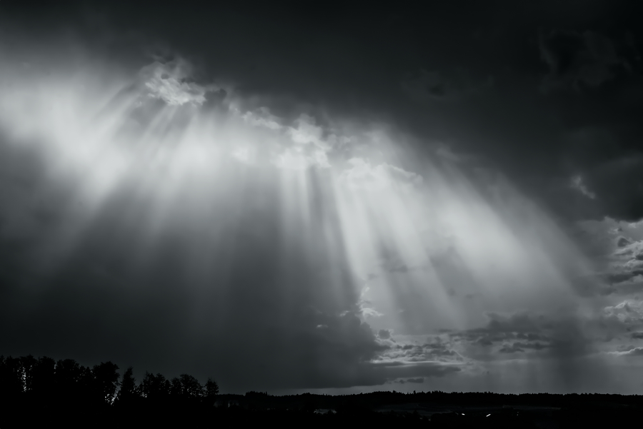 Nachtragsbild vom 2.8.2024 am Abend, als sich das Sonnenlicht im Niederschlag einer zerfallenden Gewitterzelle präsentierte.