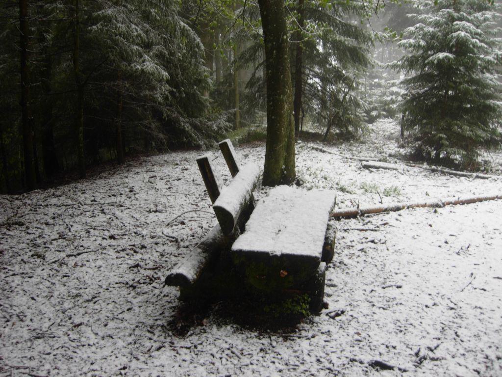 Wie angetönt hat es hier geschneit bzw. tut es immer noch. Die Schneegrenze liegt gerade etwas unter 1000m. Auf 1100m.ü.M. sah es so aus: