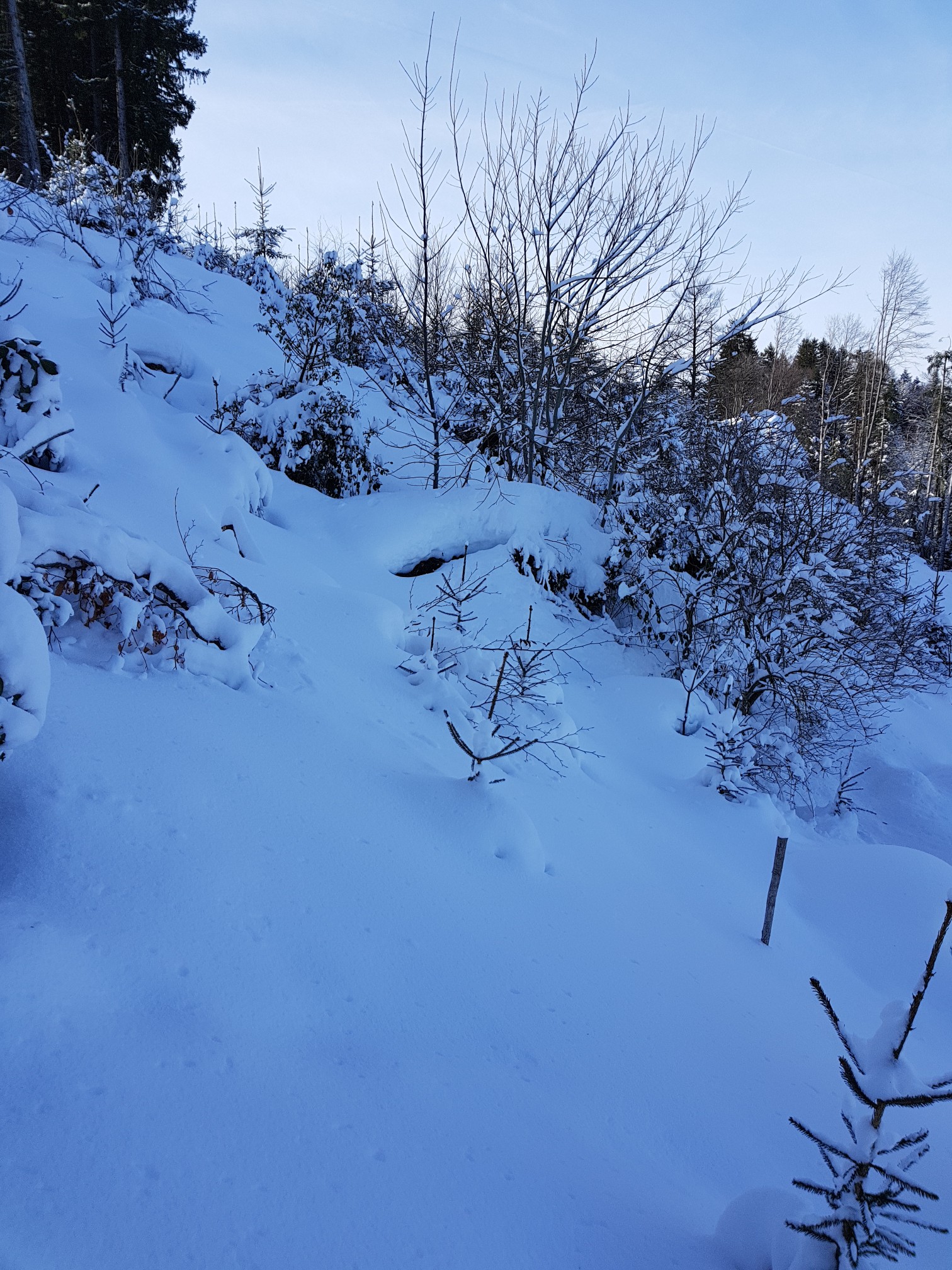 Nichtsdestotrotz gab es erneut recht viel Schnee, obwohl der Wind wieder viel verblasen hat (40 km/h Böen), daher ist es nicht verwunderlich, dass die Schneewächten > 1/2 m hoch sind.