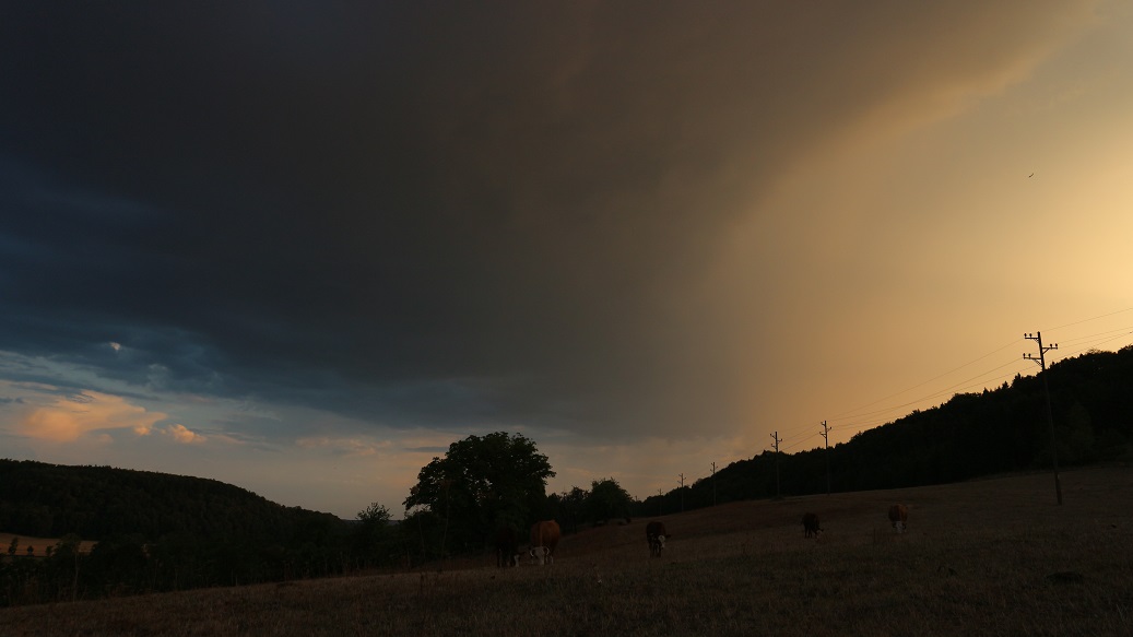 Das Gewitter heute abend tanzte Ringelreihen. Nach dem Abendessen auf der Terrasse fing es plötzlich ziemlich nah an zu donnern, irgendwo über der Albiskette im Süeden des Uetlibergs. Dann ging es Richtung Südosten nach Horgen/Wädenswil. Da blieb es längere Zeit stationär und wässerte. Auch die Blitzrate stieg an, es blieb aber meist bei Wolkengeflacker. Dann kamen die Anbauten im Westen, über Baar, Cham, Sins ging es bis nach Beromünster, wo es auch jetzt noch elektrisch ist, wohl nicht mehr lange. In Sellenbüren selbst begann es irgendwann aus dem Amboss der Gewitterzellen gemütlich zu tröpfeln, naja, die 0.51 mm bis anhin sind besser als gar nichts.