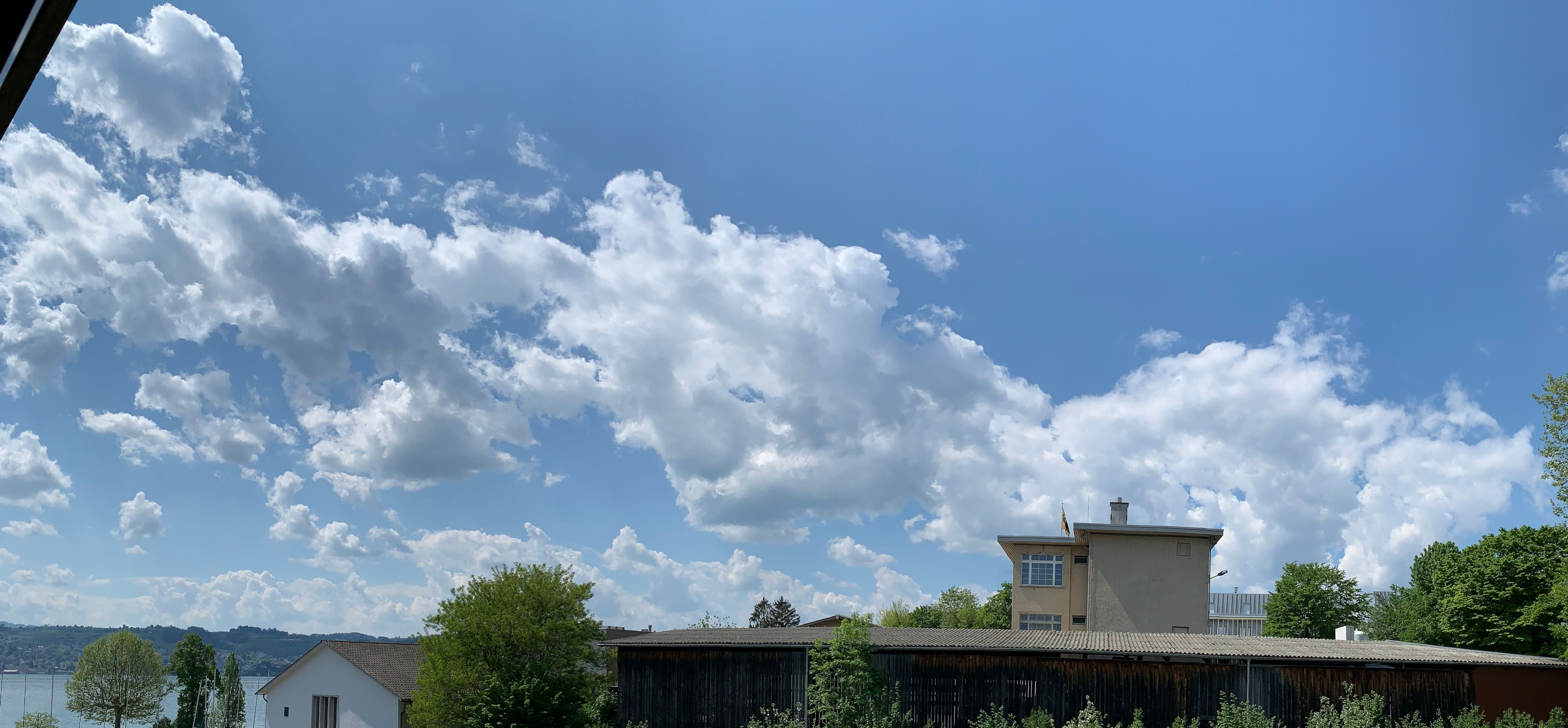Da ist eine richtige Cumulus-Party im Gange vor meinem Balkon. Es fing vor dem Mittag an mit zaghaften Quellungen. Nun werden die Quellungen langsam grösser und die Unterseiten der Wolken dunkler. Bin gespannt, ob daraus etwas Vorzeigbares entstehen wird. Rein von der Positionierung her passt das an sich hervorragend für meine Region (mittlerer Zürichsee):