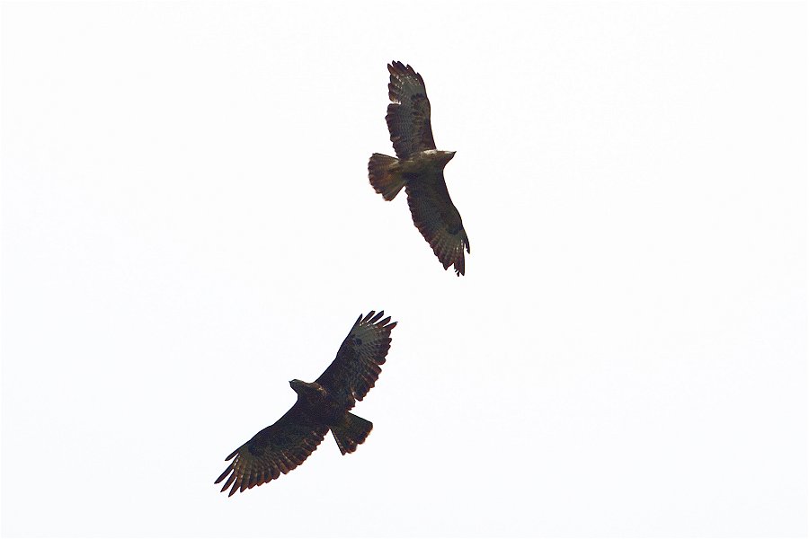 Und achso... ;) Die "Rotmilane" sind Mäusebussarde. Auch hier ein ganz anderes Flugbild: Rotmilane haben einen gegabelten Schwanz und haben - wie der Name schon sagt - ein rötliches Gefieder.