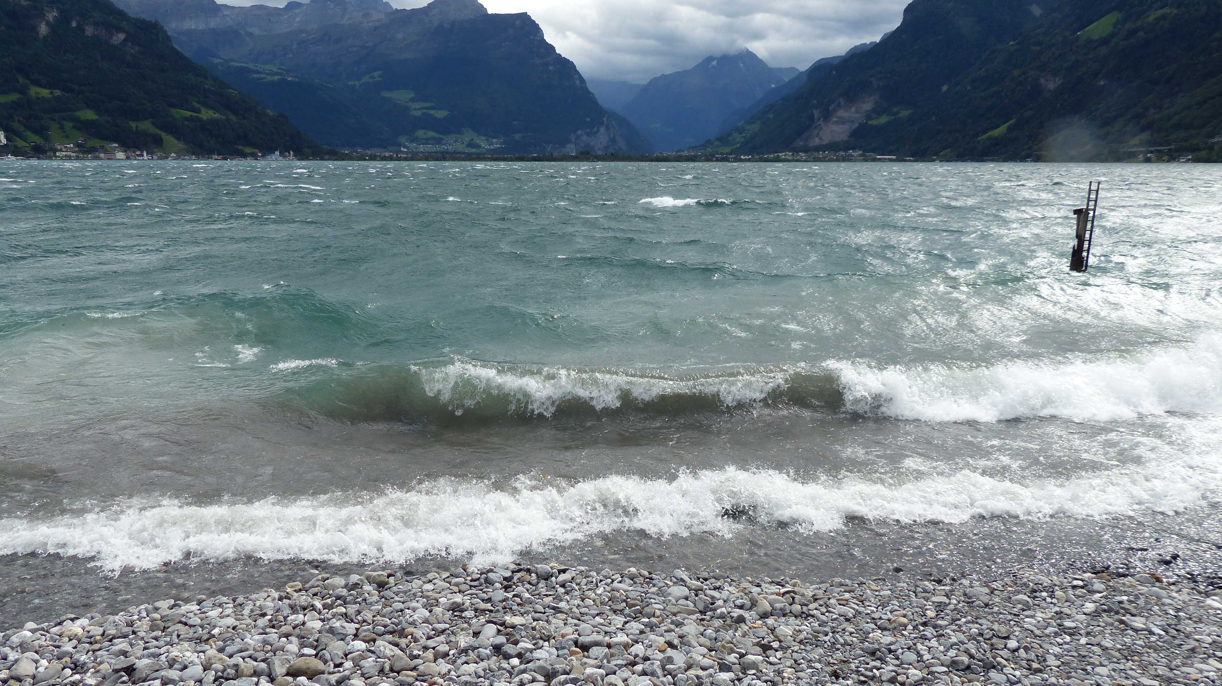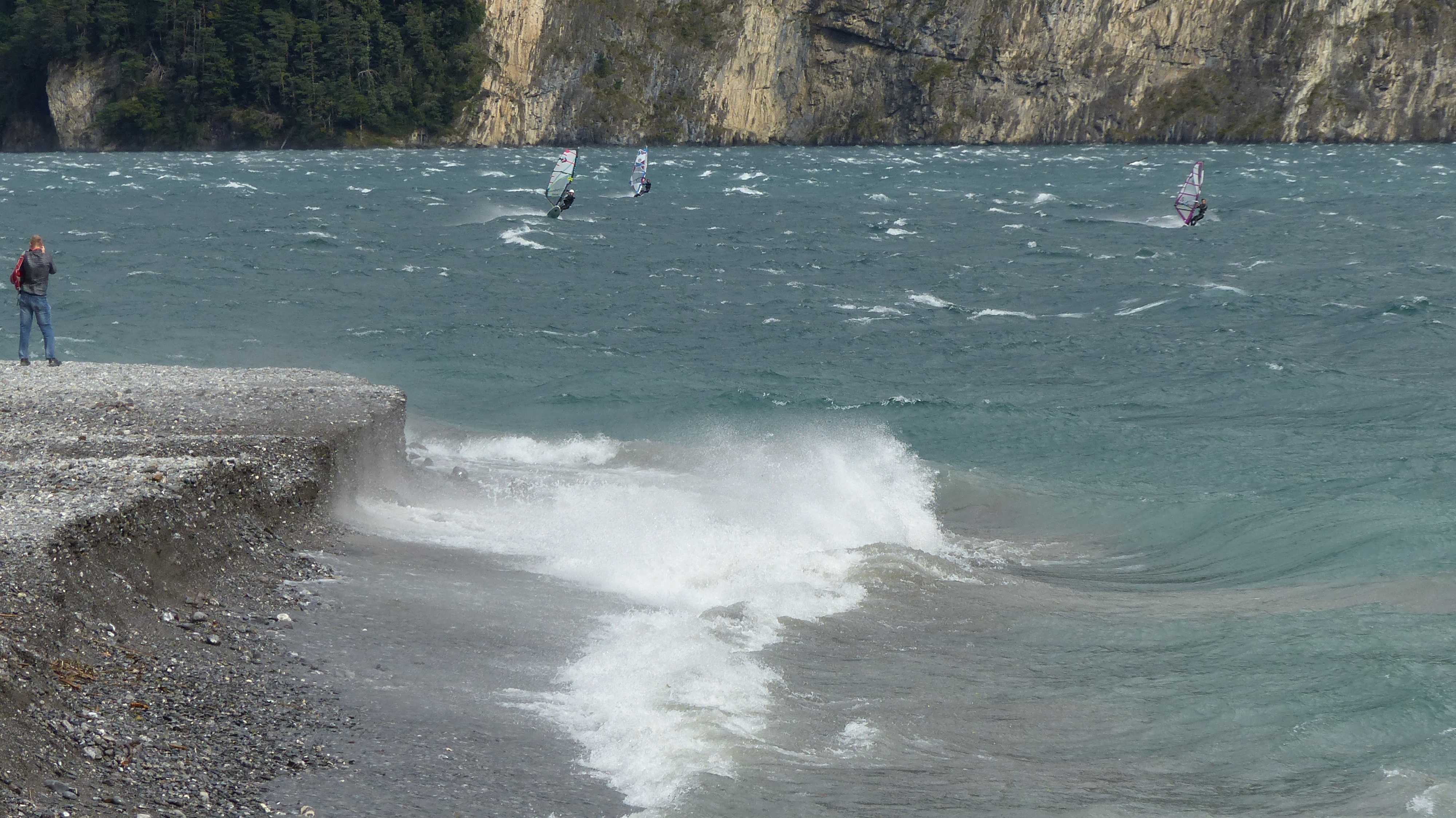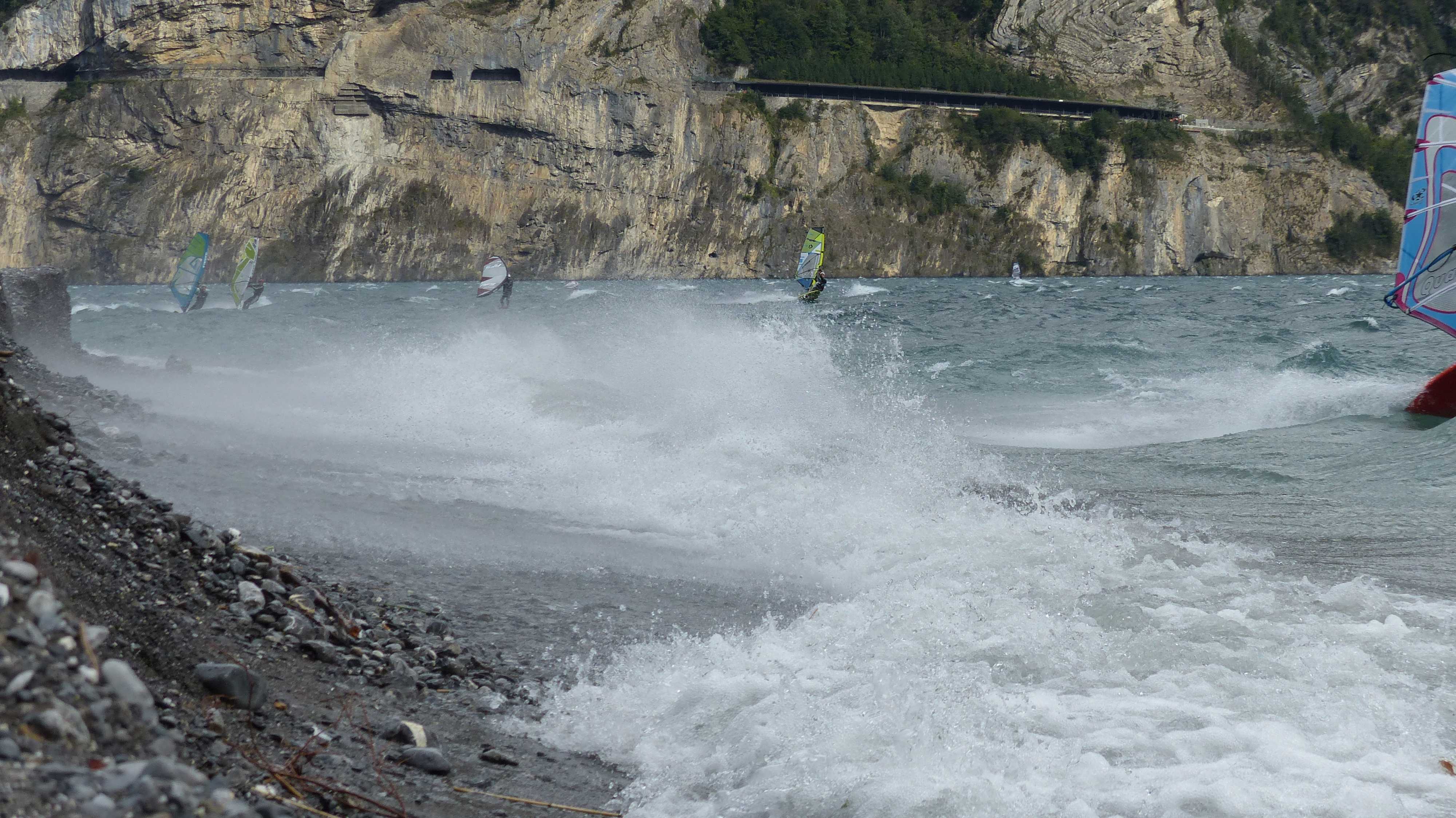 Danach die Fahrt über das Linthtal und den Klausenpass. Um 14 Uhr war ich in Isleten. Hier war der Föhnsturm wesentlich stärker. Auch hier hatten viele Surfer ihren Spass.