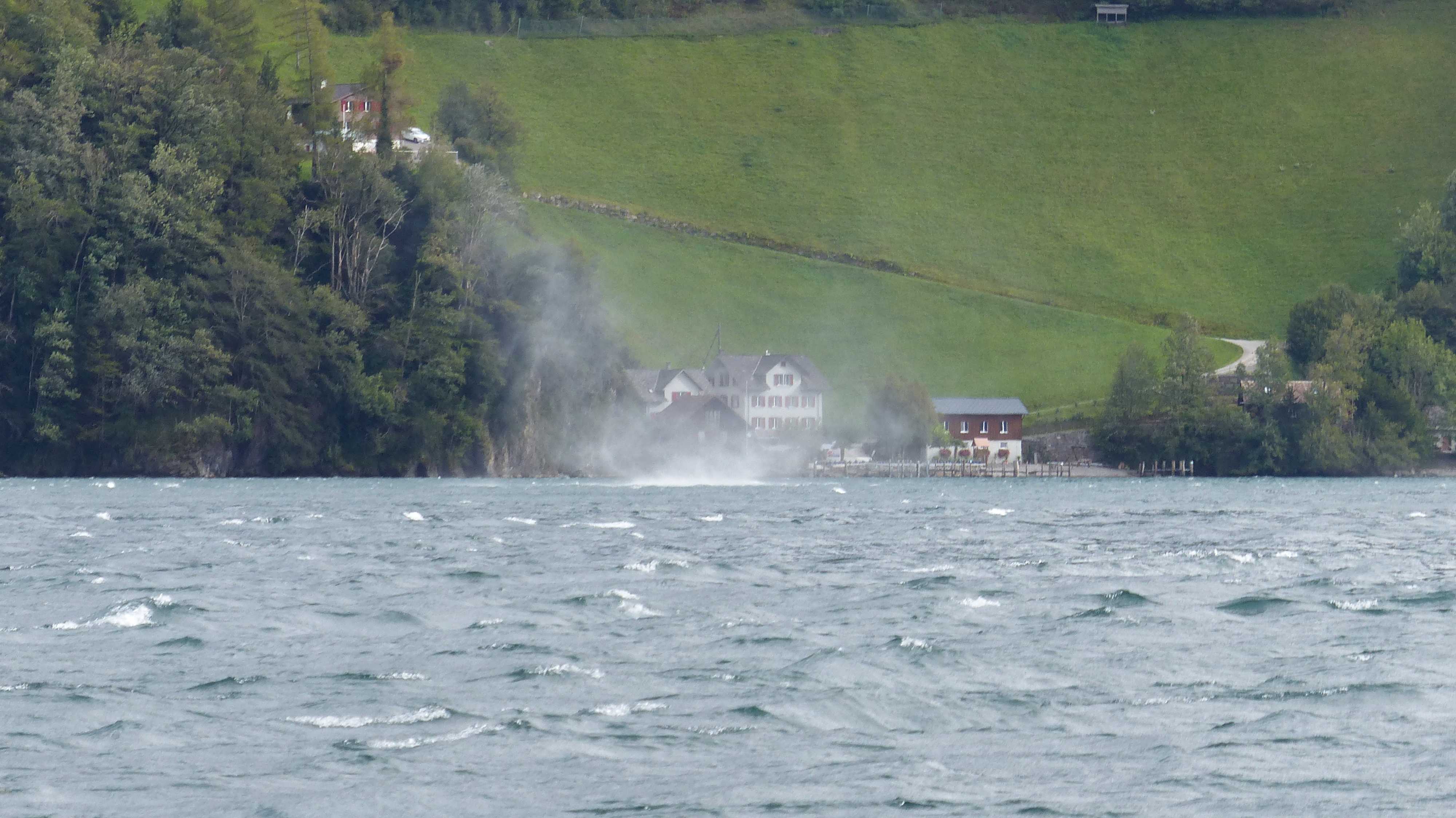 Der Charakter des Sturms war hier anders als in Isleten, wo der Wind relativ gleichmässig stark blies. Hier kamen die Windböen stossweise und dauerten etwa eine Minute, unterbrochen mit Pausen, wo es zwar nicht windstill war aber doch relativ ruhig.