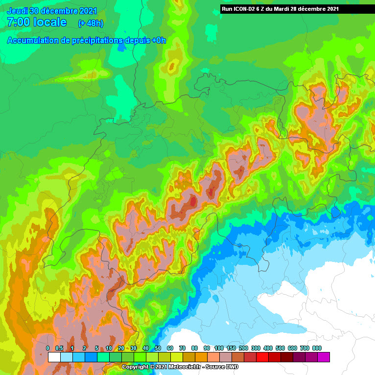 Kritisch ist die Sache auf jeden Fall bis zum Donnerstag, also so lange wie der Feuchtetransport aus diesem irrsinnigen atmosphärischen Mildfluss zum Alpenraum anhält. Danach kommen wir voraussichtlich auf die Keilachse, sodass es zwar noch wärmer wird, aber immerhin kein Regen mehr fällt.