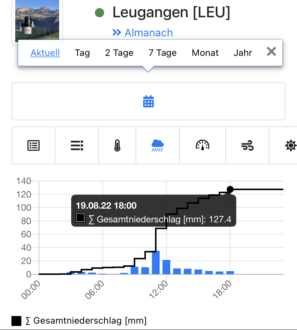 Oberriet SG hat nun seit Mitternacht über 100mm Niederschlag erhalten :schirm: