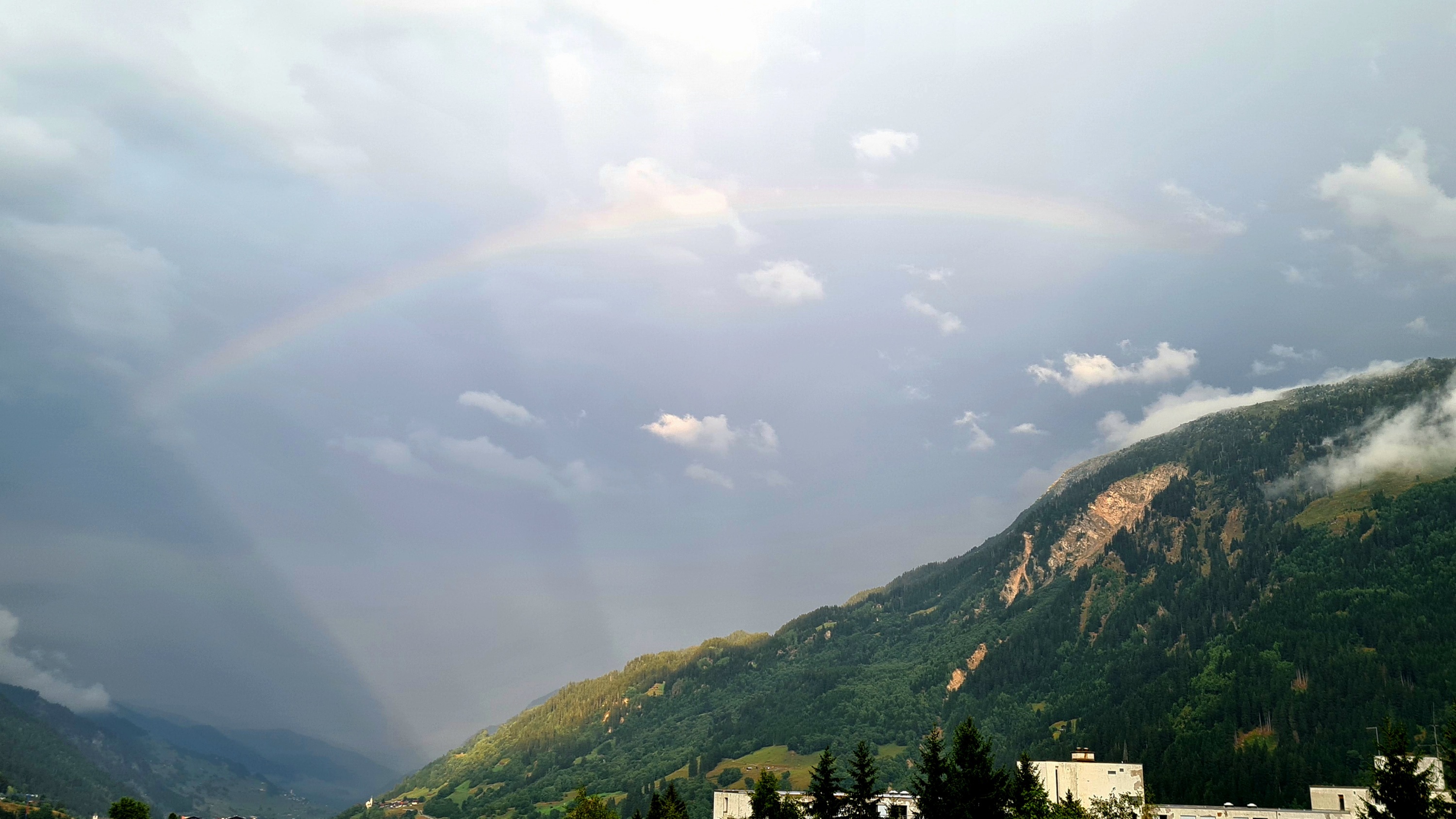 Die Gewitter ziehen Nördlich und Südlich vorbei, dafür gibt es immer wieder mal einen Regenbogen.