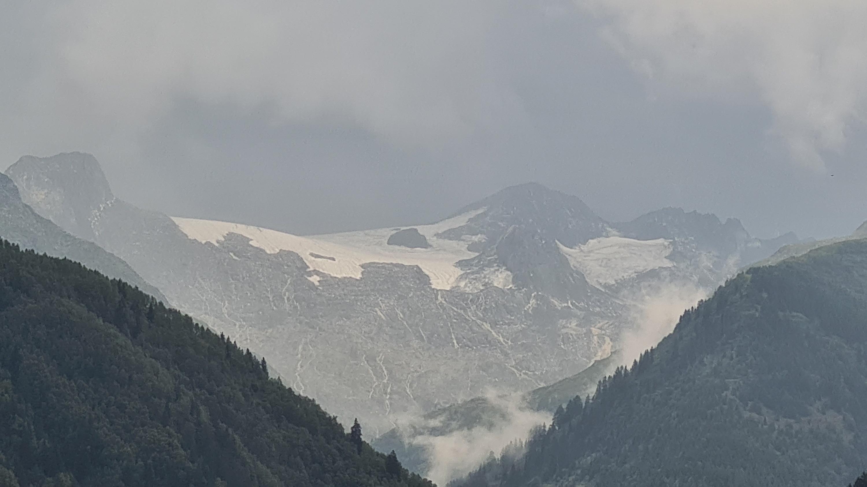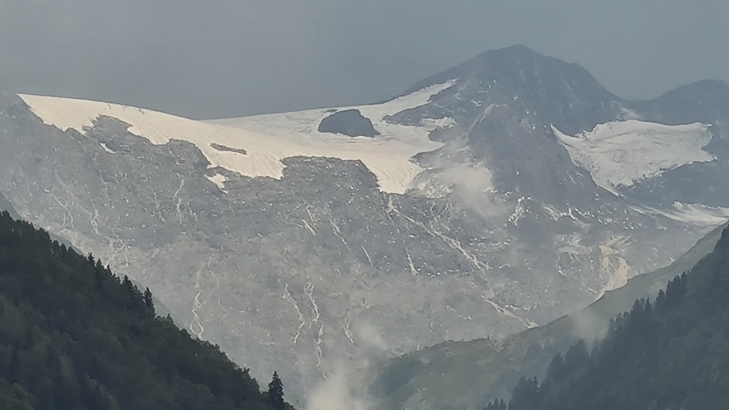 Heftiges Unwetter südlich von Disentis. Der Gletscher vom Piz Medel hat eine Packung Eis geliefert bekommen. Die vielen Bäche waren vorhin auch noch nicht da.