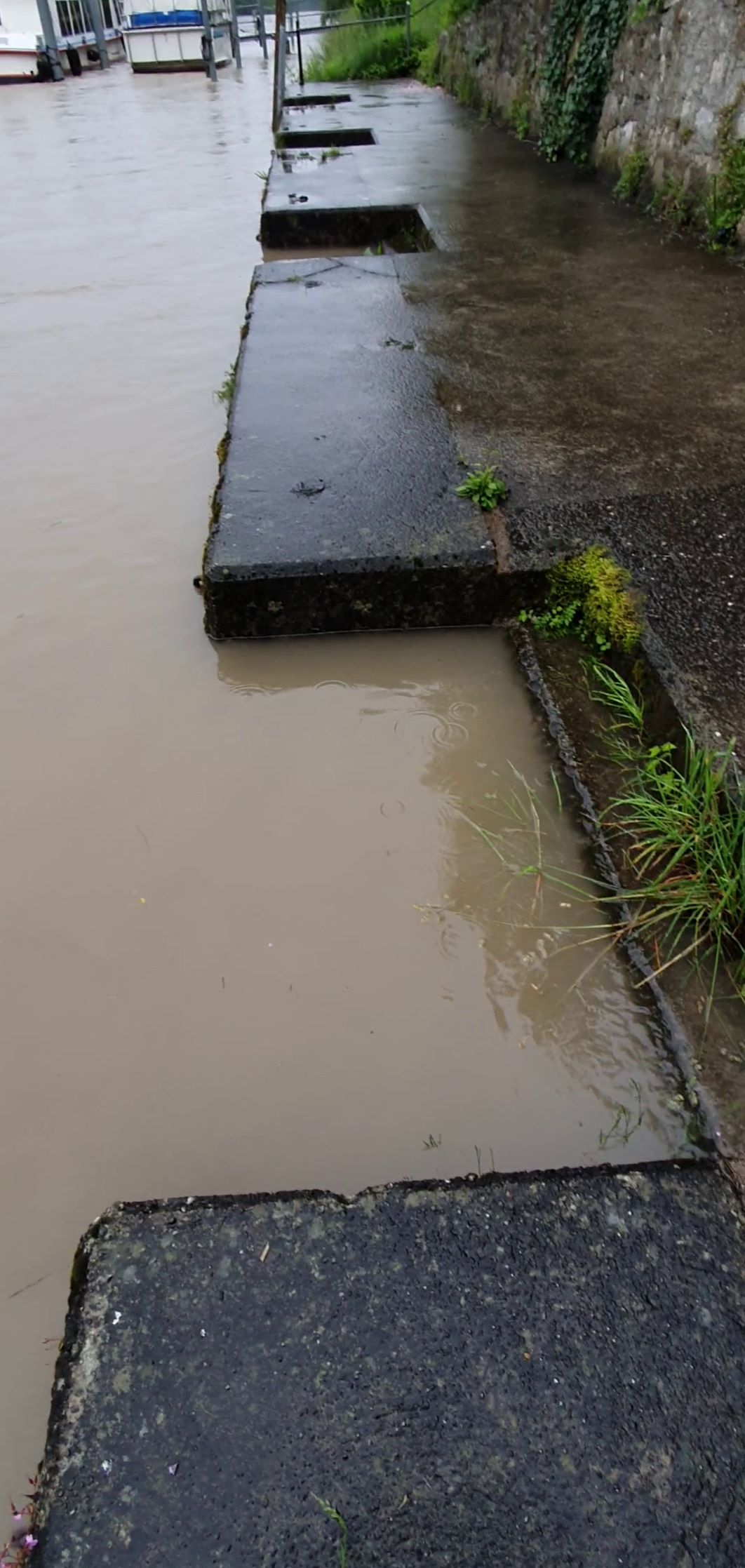 Der Rhein bei Kaiserstuhl kurz davor den Steg zu überfluten.