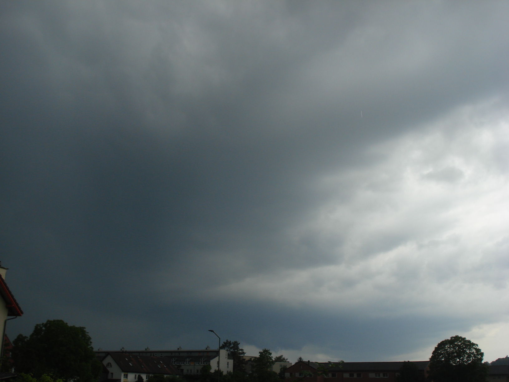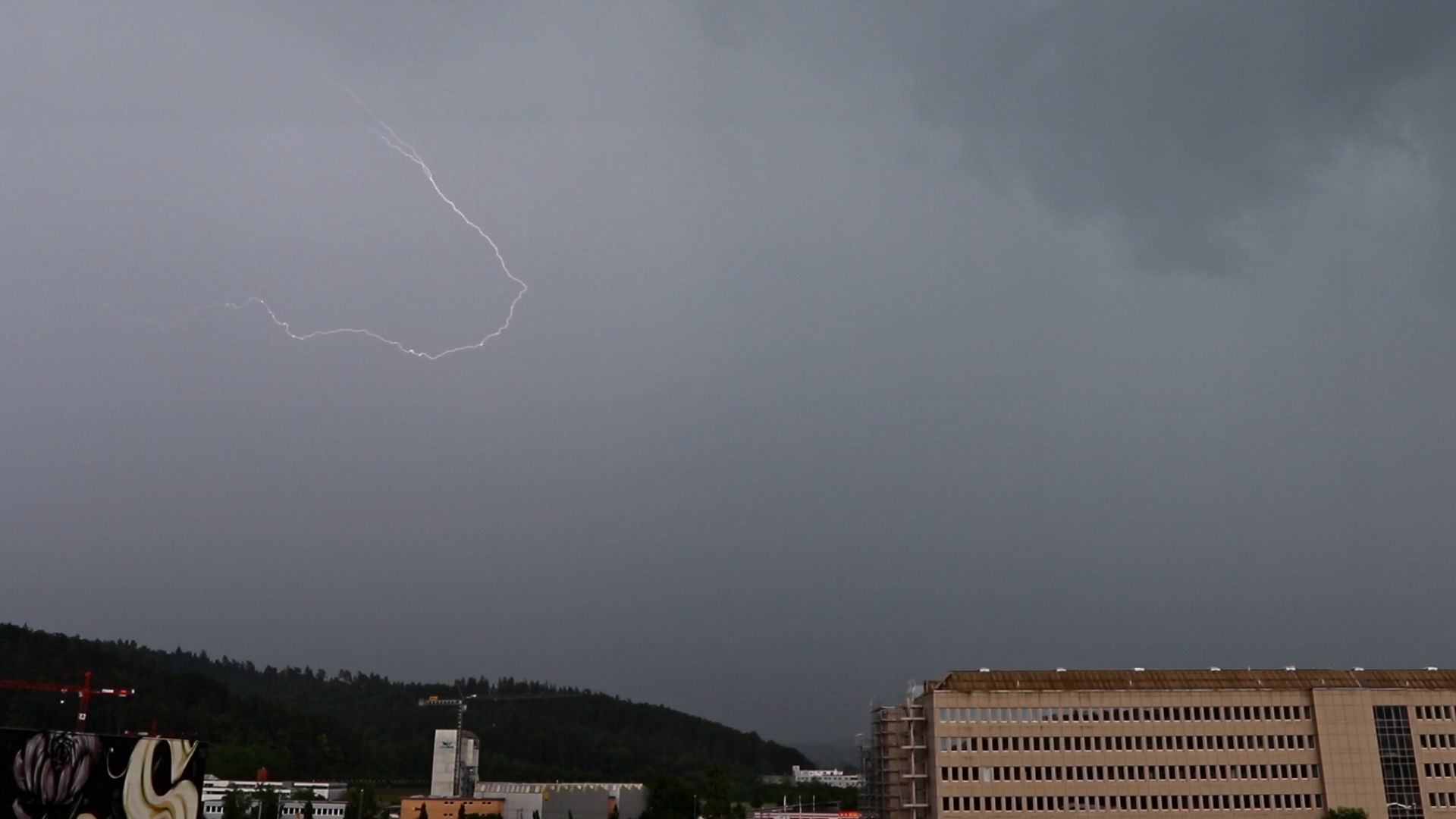 Ich war unter einem Dach neben Schloss Hegi, und es gab schönen Starkregen und Dauerdonner  -  besonders an der Rückseite  -  aber auch hier war Hagel keinen zu sehen, und der Sturmwind dauerte zum Glück nur kurz,