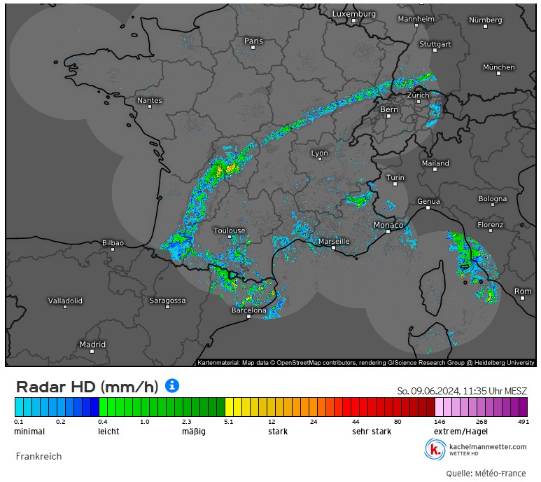 Wie sich die zusätzlichen Kondensationskeime auf die Gewittertätigkeit auswirken, werden wir spätestens am Abend sehen. Nach meinem Verständnis müsste es funktionieren wie ein Einsatz tausender Hagelflieger: Sehr viel Wasser, wenig bzw. nur kleines Eis.